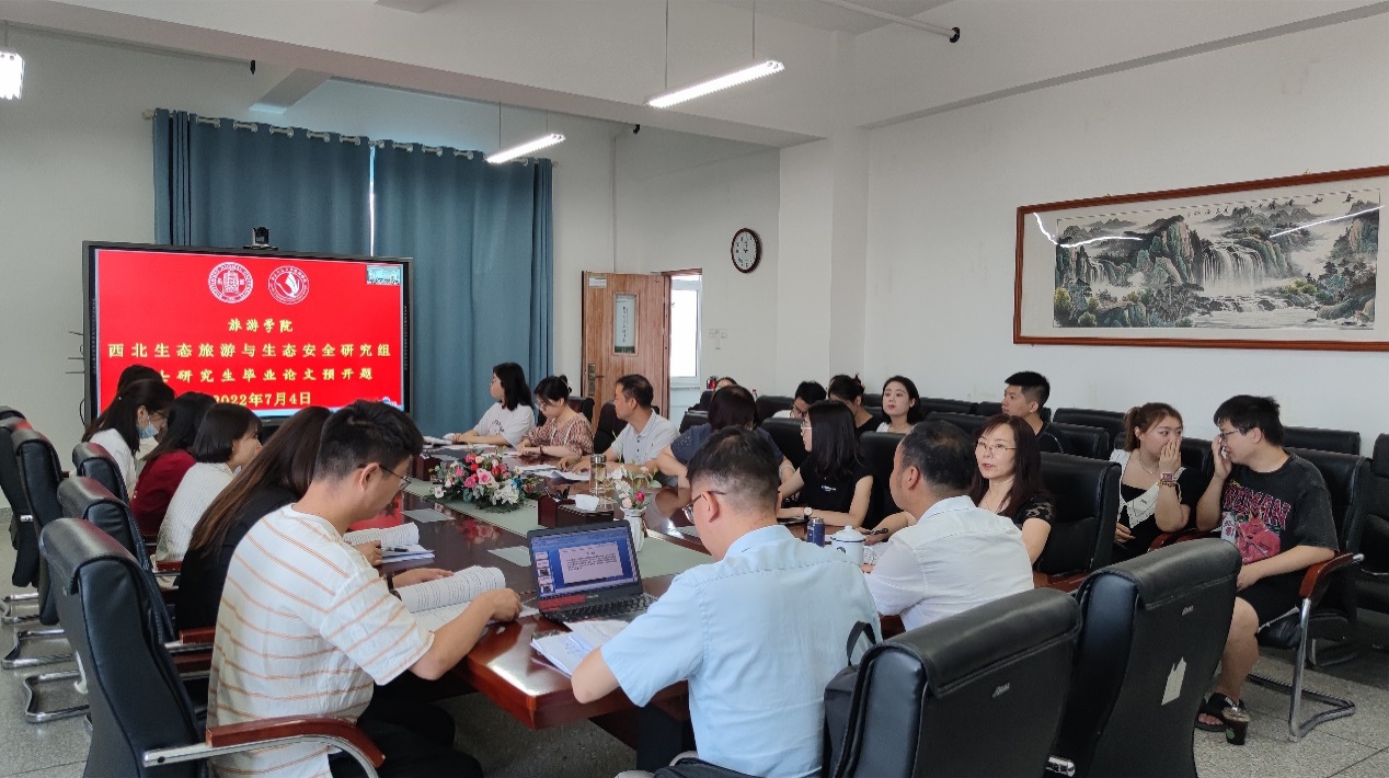 7月4日上午9点,在新文科实训楼1101会议室,西北生态旅游与生态安全研究团队开展了研究生预开题。beat365官网副院长武克军、杨阿莉教授、魏宝祥、毛笑文、杨波和刘婵老师,组织团队2021级专硕及2020级学硕同学,合计30名研究生,进行预开题。