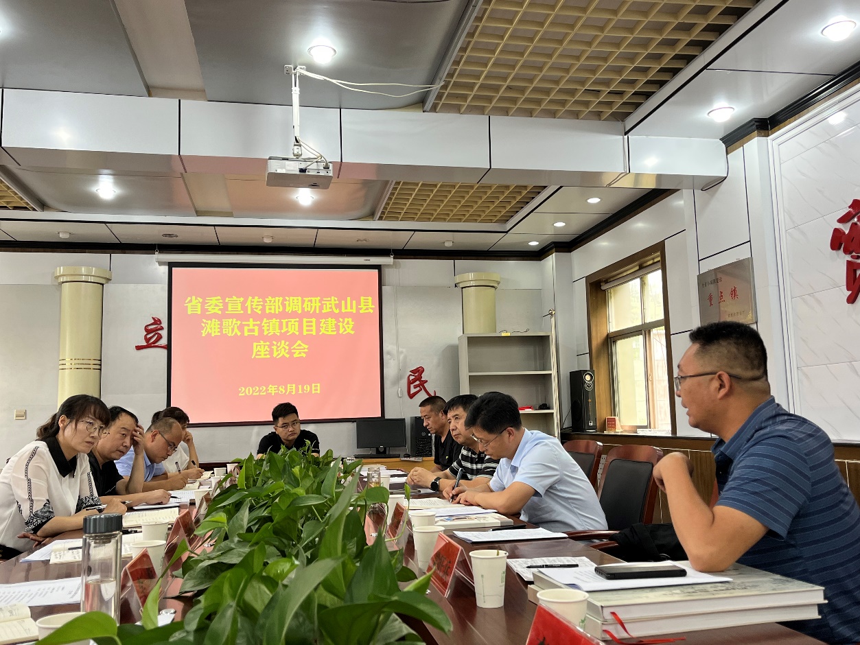 8月19日,省委宣传部发改处处长闫永强带领由省委宣传部、省文物局、beat365中文官网相关专家学者组成的调研组,赴武山县专题调研滩歌古镇建设保护情况。学院院长梁旺兵教授、万建斌副院长、武克军副院长、把多勋教授、李东泽副教授、包军军副教授一同调研,天水市委宣传部副部长阎小鹏,武山县委常委、宣传部部长胡丽霞,副县长李峰一同调研。