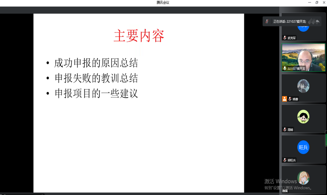 报告会上,窦开龙副教授主要从个人成功申报国家社科项目的原因总结、个人申报国家社科项目失败的教训总结和申报国家社科项目申报的建议三个方面讨论在国家社科基金项目申报中存在的问题。
