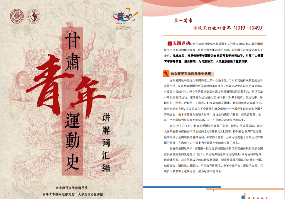 团队成员们广泛收集整理资料、精心打磨撰写讲稿,通过对甘肃党的青年运动历史分年代、分篇章的形式,将甘肃党的青年运动历史分为四个篇章内容,时间跨度从1919年至2022年,集中讲述了在中国共产党的领导下甘肃青年的百年奋斗篇章。