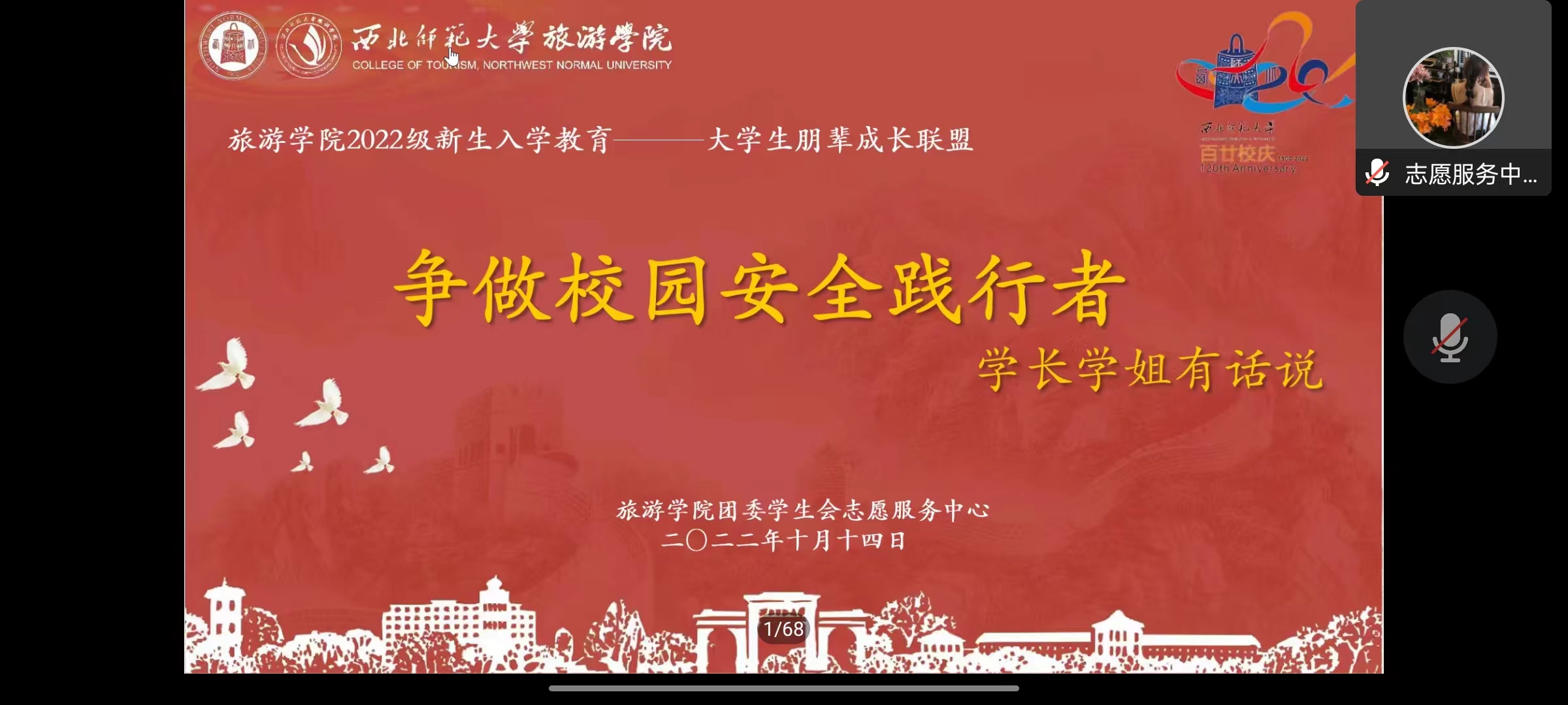 为进一步增强大学生安全防范意识,全面普及校园安全常识,培养良好的文明行为习惯。2022年10月14日,beat365中文官网举办新生入学教育之“争做校园安全践行者,学长学姐有话说”校园安全知识宣讲活动。活动邀请beat365中文官网专职辅导员鲁梦鸽老师、赵新帮老师线上参加,2022级全体新生积极参会。
