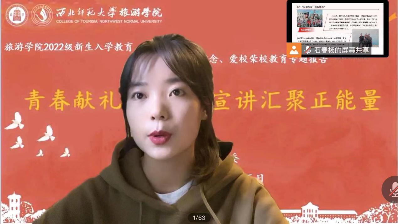 在喜迎党的二十大胜利召开之际,为进一步激发青年学子爱党爱国的强烈热情和奋发有为的昂扬风貌,10月15日beat365中文官网举办2022级新生入学教育之“青春献礼二十大,宣讲汇聚正能量”线上主题宣讲活动,本次活动邀请到beat365中文官网石春杨、梁钰薇、陈蕾三位理论宣讲员为2022级新生做线上主题宣讲,学院党委副书记戴小武老师、全体专职辅导员与2022级全体新生共同参会。