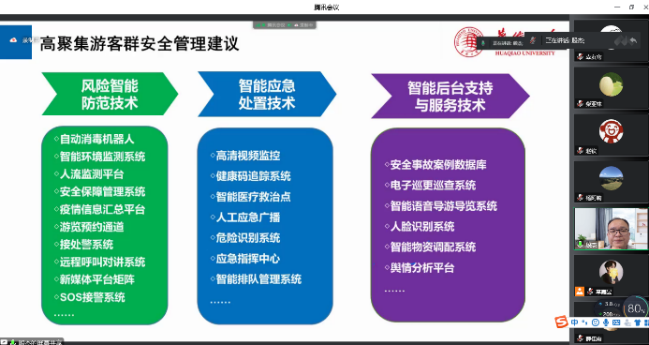 报告会上,殷杰教授从疫情常态化防控与高聚集游客群安全管理的现象透析、特征分析与风险明晰、机理研析与状态评析、研究的思考辨析等方面展开阐述,从为何而来、是何状态、为何产生和后续如何四个角度进行讲解。并通过近期所发生的高聚集游客群安全事件、以及诸多旅游风险案例和详实数据,分析了旅游活动中的安全隐患类型、疫情常态化防控下旅游安全管理的紧迫性和必要性。同时,殷教授也展示了采用扎根理论、空间分析、系统动力学等研究手段来对高聚集游客群系统及其子系统间的形成机理和影响效应进行深度剖析和逻辑性评价,并就当下疫情常态化防控中的旅游安全问题提出了针对性的管理建议。此外,殷教授就文献阅读方法及论文选题要点,结合自身经历以幽默风趣的方式进行了分享。