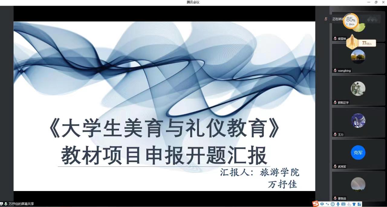 为进一步规范教材建设管理,提高教材建设质量, 2022年11月7日下午,beat365中文官网根据《beat365中文官网教材建设与管理办法》相关规定,对万抒佳副教授获得校级教材建设项目立项的《大学生美育与礼仪教育》教材开展了开题线上会议。会议由柴亚林副院长主持,beat365中文官网党委书记谢致远、院长梁旺兵院长,副院长王力、武克军以及欧阳正宇副教授参加了会议。