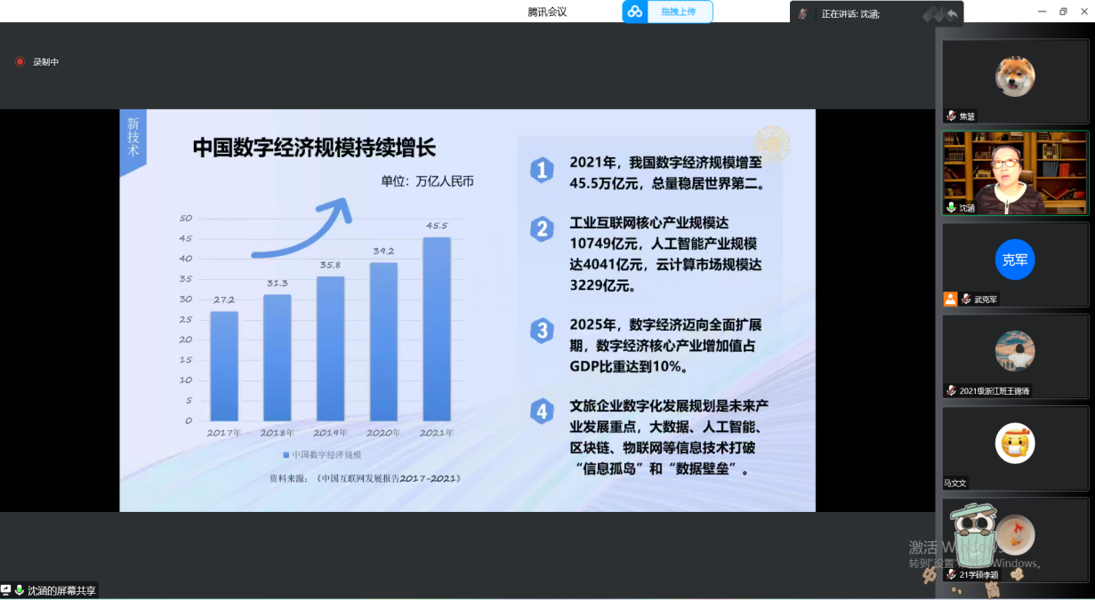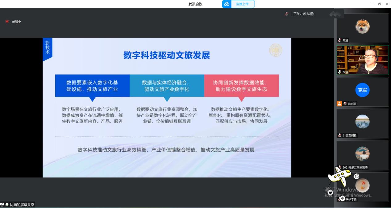 在本次报告中,一方面沈教授结合上海、西安、敦煌等城市成功文旅案例生动说明,数字经济对文旅产业的驱动发展,数字经济通过对线上线下串联,对传统文旅产业的打造。另一方面,通过现阶段数字经济在文旅产业中的应用,指出将传统文化项目与数字科技结合,通过挖掘地域文化元素、IP项目打造独特消费者体验,可以帮助城市形成独特的映像。同时通过新的数字产品、文旅产品新模式,运用数字经济带动旅游者与文化景区互动,更加深化游客对旅游地的认知。