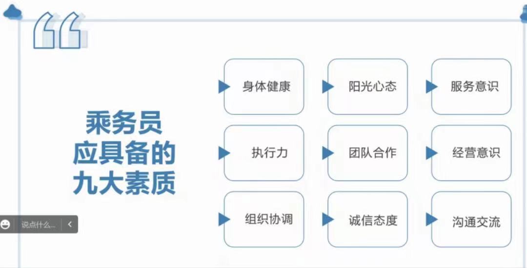 接着老师分析后疫情时代民航业的发展情况。本专业培养具有较高的政治素质、文化素质、艺术素养和职业素养,掌握艺术学、管理学和航空服务学的基础理论和基本知识,了解航空业有关的政策和法规熟悉国内外航空服务业务流程和要求,掌握航空服务和管理的基本技能,具备较强的航空服务能力、英语会话能力、沟通协调能力和应急处置能力,能在航空业从事航空服务和管理的国际化高端服务应用型人才。