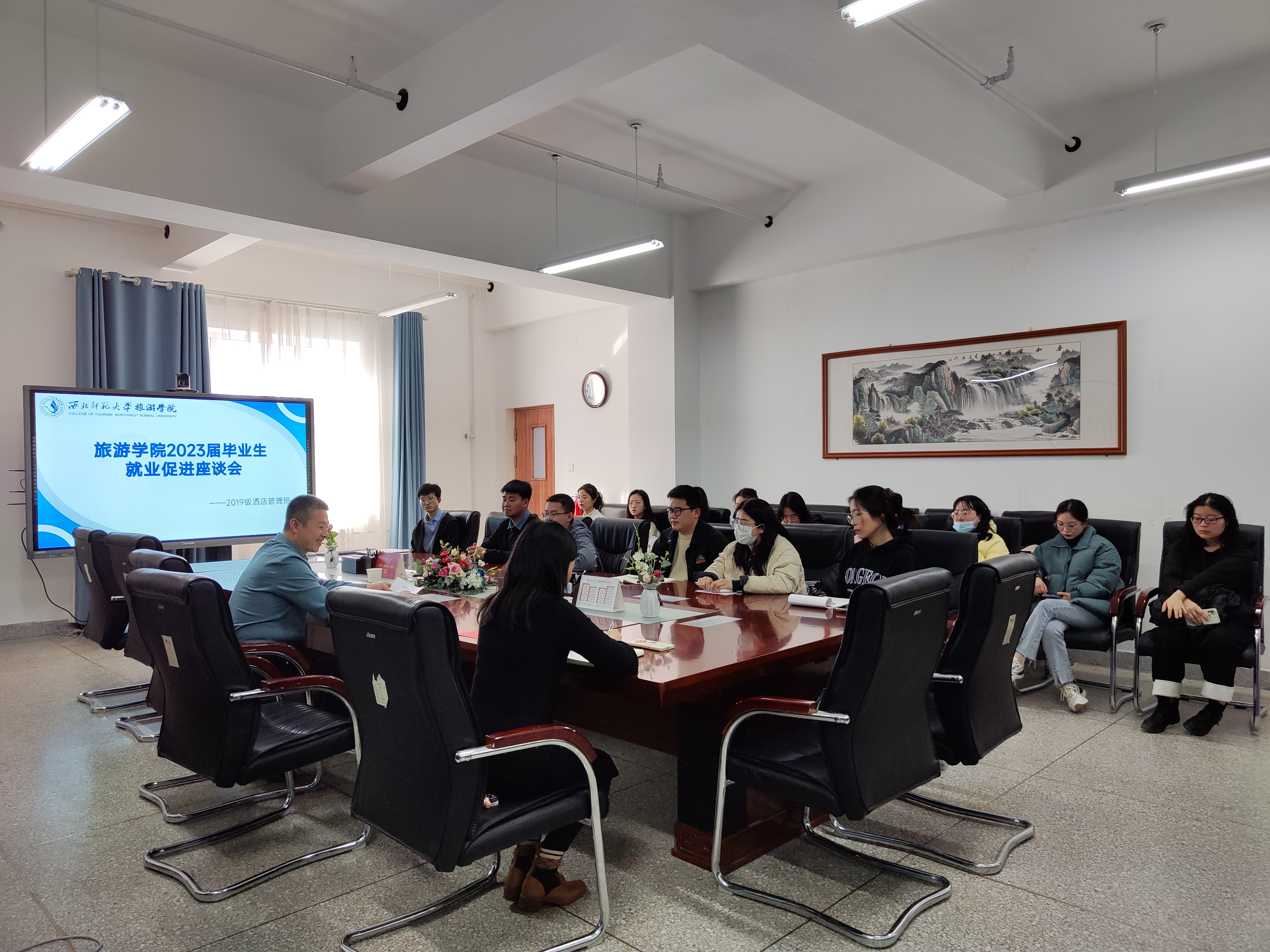 3月3日下午,beat365中文官网党委副书记戴小武主持召开2023届毕业生“促就业”系列活动暨2023届酒店管理班就业促进座谈会,酒店管理班班主任王耀华以及酒店管理班所有在校学生参加此次会议。