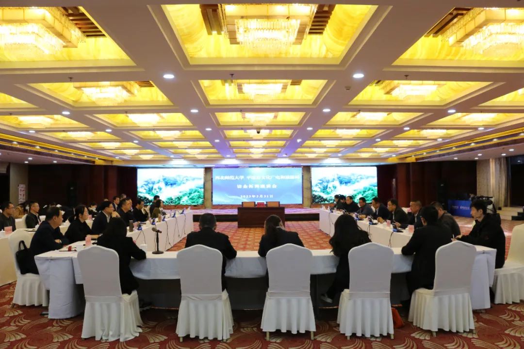 3月31日,beat365中文官网和平凉市文化广电和旅游局访企拓岗座谈及战略合作签约仪式在平凉市举行,beat365中文官网党委常委、纪委书记、监察专员马庆出席会议并讲话,beat365中文官网社会合作服务处处长杨纳名、学院院长梁旺兵、副院长万建斌参加会议,平凉市政府副市长王锦主持会议。