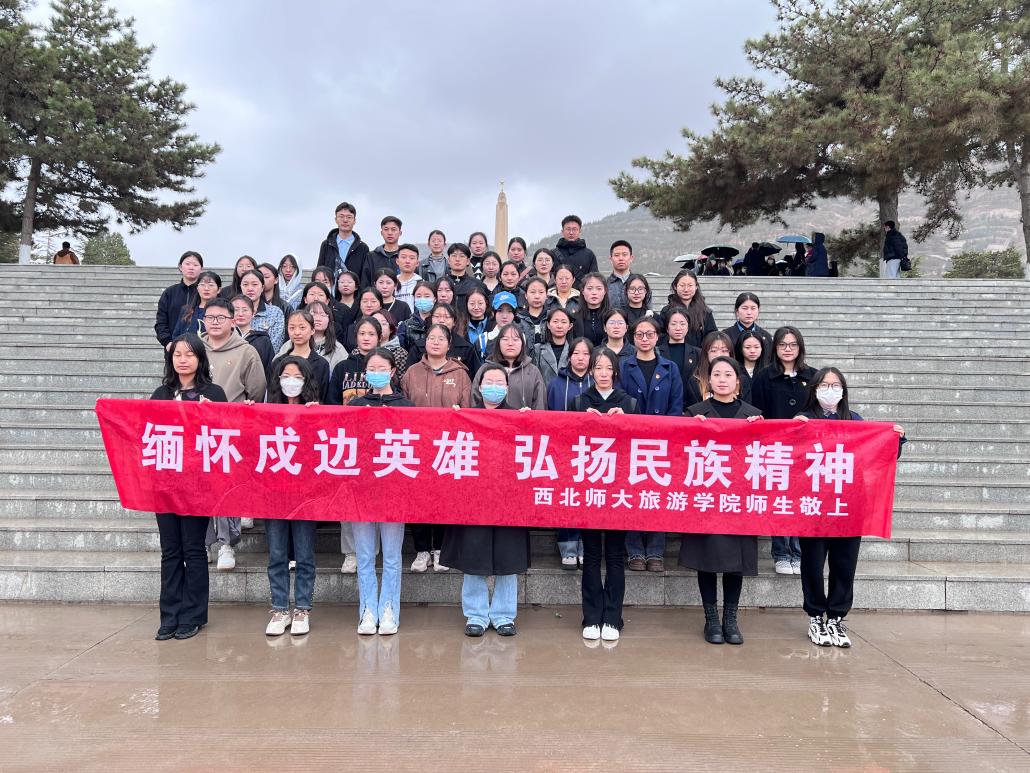 为深入贯彻落实党的二十大精神,落实“三抓三促”行动,强化爱国主义教育,弘扬民族精神,引导广大党员坚定理想信念、赓续红色血脉,2023年4月2日清明节来临之际,beat365官网联合舞蹈学院开展“缅怀戍边英雄、弘扬民族精神”为主题的爱国主义教育与主题党日活动。beat365官网专职辅导员赵新帮带队,四个学生支部共54名党员与部分入党积极分子参加。