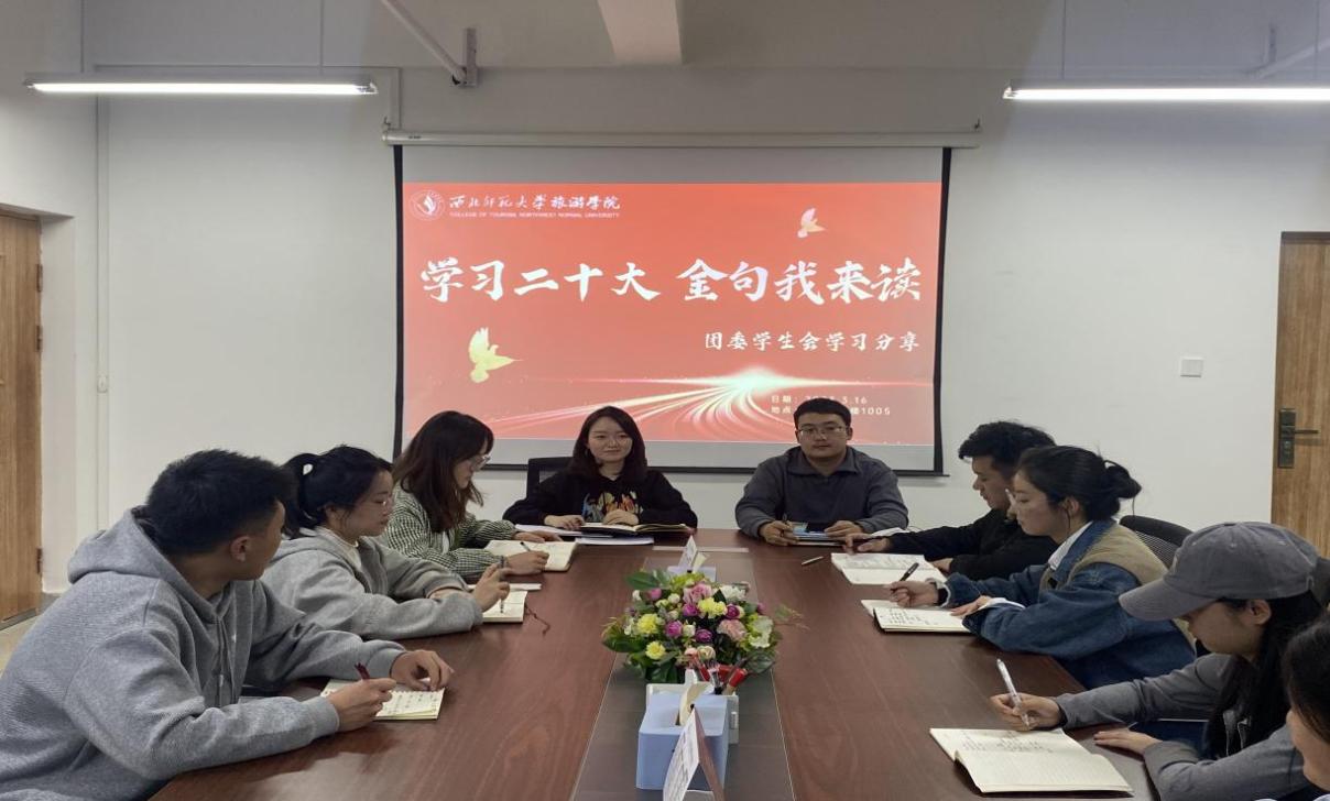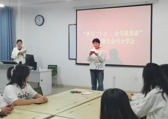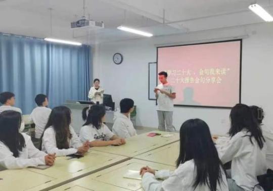 为进一步学习贯彻落实党的二十大精神,在广大学生中加强爱国主义教育,弘扬时代主旋律,2023年3月13日晚19:00,beat365中文官网组织开展了“学习二十大,金句我来读”学习分享交流会活动。beat365官网团委书记鲁梦鸽老师、全体专兼职辅导员与2021、2022级各班团支书,学生会代表共同参加此次分享会。