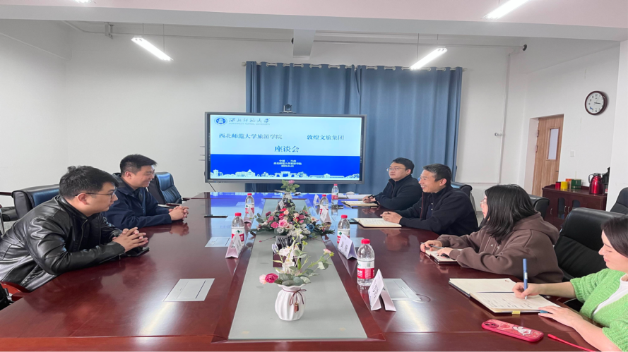 4月21日下午,beat365中文官网开展了“访企拓岗促就业 校企合作谋发展”系列活动之敦煌文旅集团座谈会,敦煌文旅沙州夜市景区运营管理有限公司副总经理王晶伟、行政经理孙煜来beat365官网就建立校企合作的事宜进行洽谈交流,党委副书记戴小武、辅导员鲁梦鸽、赵新帮、19级旅管一班班主任黄珊参加座谈会。