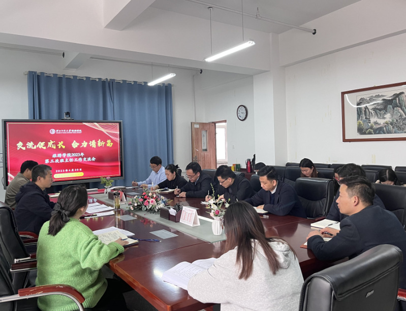 为深入贯彻“三抓三促”行动决策部署,有效落实党委学生工作部会议精神,4月20日下午,beat365官网召开“交流促成长·合力谱新篇”2023年春季学期第三次班主任工作交流会议。学院党委副书记戴小武、本硕各年级班主任、空乘工作站教师和专职辅导员参加此次会议。