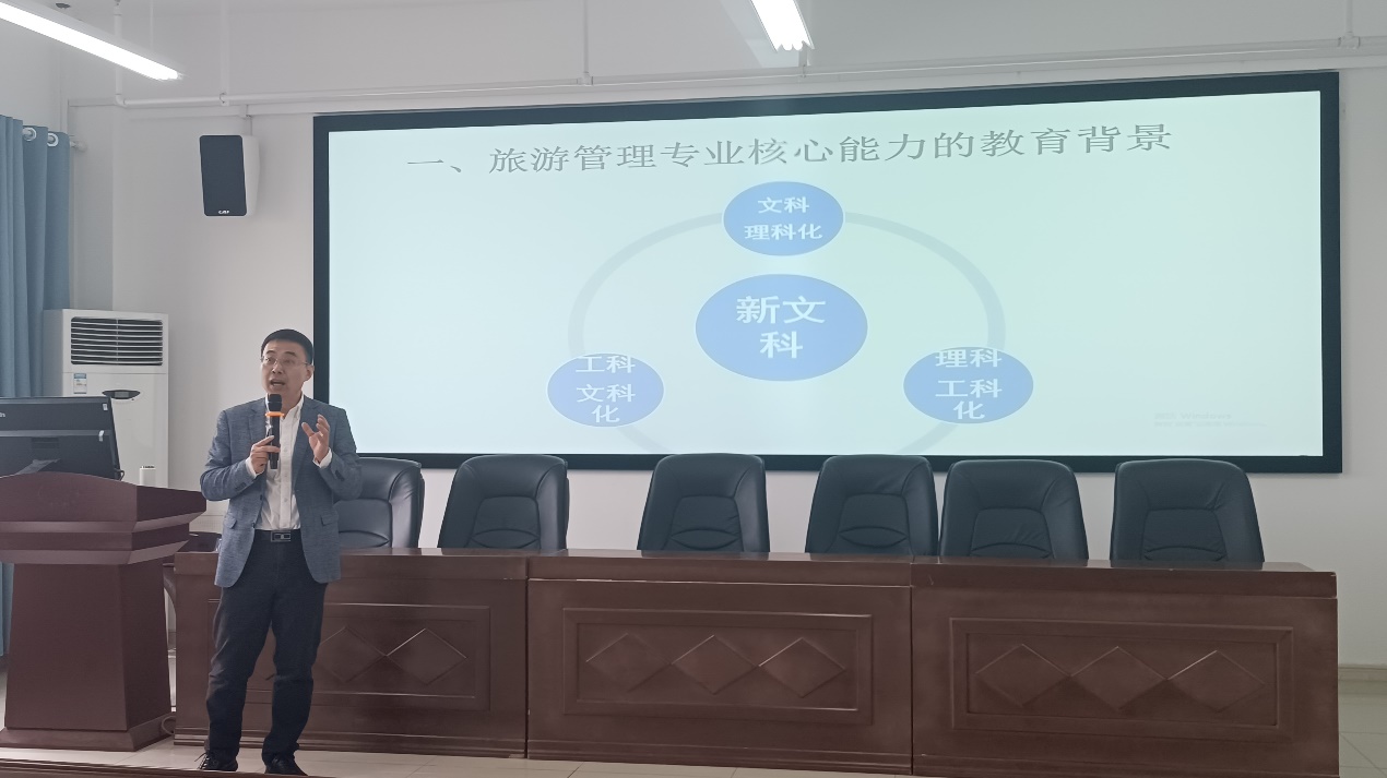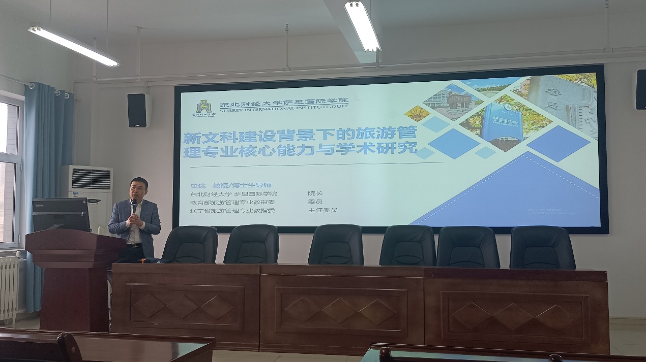 4月24日上午,东北财经大学萨里国际学院院长、中国旅游协会旅游教育分会副会长、教育部旅游管理专业教学指导委员会委员、中国旅游协会旅游教育名师、辽宁省旅游管理专业教学指导委员会主任史达教授在beat365中文官网文科实训楼904教室,为beat365官网师生作了题为“新文科建设背景下的旅游管理专业核心能力与学术研究”的专题报告,报告会由把多勋教授主持。