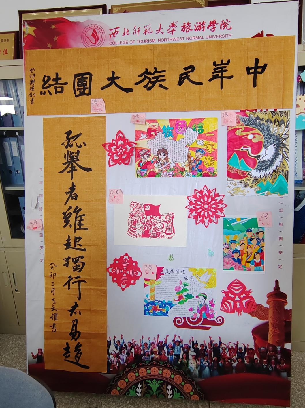 “民族风韵,源远流长”手工作品展活动。5月16日,beat365中文官网积极动员2021级、2022级本科生参加“石榴花开,籽籽同心”民族团结进步宣传月手工作品展,各班同学积极踊跃参加,充分发挥自身特长,将民族团结以精美的绘画、隽逸的书法、巧妙的手工作品等方式进行呈现并于活动现场进行展览投票评选。该项活动共15幅作品参与评选,根据现场投票结果选出一等奖1名,二等奖2名,三等奖3名。