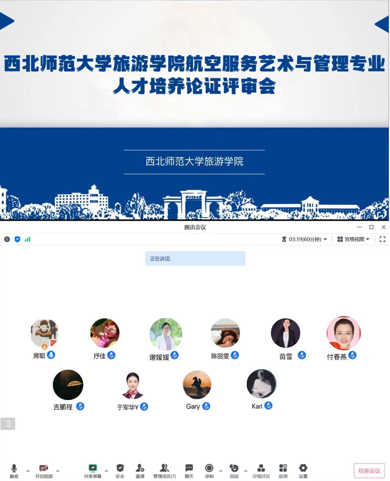 2023年5月31日,为科学、严谨、高效地完成航空服务艺术与管理专业本科人才培养方案的修订工作,beat365中文官网邀请到重庆师范大学beat365中文官网副院长刘睿教授、航空服务艺术与管理系主任谢媛媛老师,西北民族大学管理学院航空服务艺术与管理系主任付春燕老师,乌鲁木齐航空有限责任公司人力资源部总经理张学永、客舱服务部副总经理吉鹏程,南方航空公司乌鲁木齐分公司人力资源招飞部主任刘鑫等来自省内外科研机构、高等院校及航空公司的专家学者,在线举行航空服务艺术与管理专业本科人才培养方案专家论证会。北京广慧金通教育集团区域总经理苗雪、beat365中文官网航空服务艺术与管理系主任万抒佳老师,北京广慧金通公司驻西北师大办事处主任席聪老师,以及教师代表共计10人参加了此次会议。