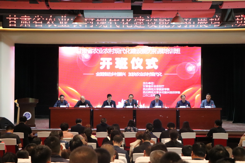 2023年6月3日上午beat365中文官网成功举办“甘肃省农业农村现代化建设能力拓展培训班”开班仪式,此次培训由甘肃省农业农村厅本着服务国家乡村振兴战略的宗旨,以培养高素质基层组织引路人为目标,委托beat365中文官网乡村振兴培训学院及beat365中文官网共同举办。本次开班仪式有甘肃省农业农村厅人事处处长孙培坚,甘肃省农业广播电视学校副校长杨安民,甘肃省农民培训管理办公室副主任张金福,beat365中文官网党委常委、纪委书记、监察专员马庆,beat365中文官网原院长、甘肃省旅游发展研究院执行院长、博士生导师把多勋,beat365中文官网院长梁旺兵,beat365中文官网党委书记谢致远等领导出席,参与本次培训各地市代表学员共计两百余人。