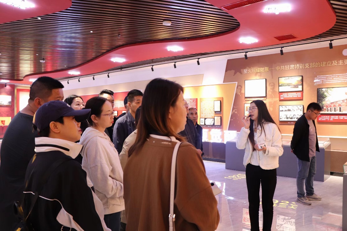 本次户外实践首先参观了红色教育基地“甘肃特别支部体验课堂”,在讲解员的带领下依次参观了主题展览区、情景教学区和“三会一课”体验区,多角度、全方位认识本地红色文化,感受红色革命精神。走进峥嵘岁月,重温红色故事。对中共甘肃特别支部的建立及主要活动进行了解,对二十世纪的甘肃社会进行了解,最后组织学员进行影片观看,直观感受甘肃特别支部的历史和活动。