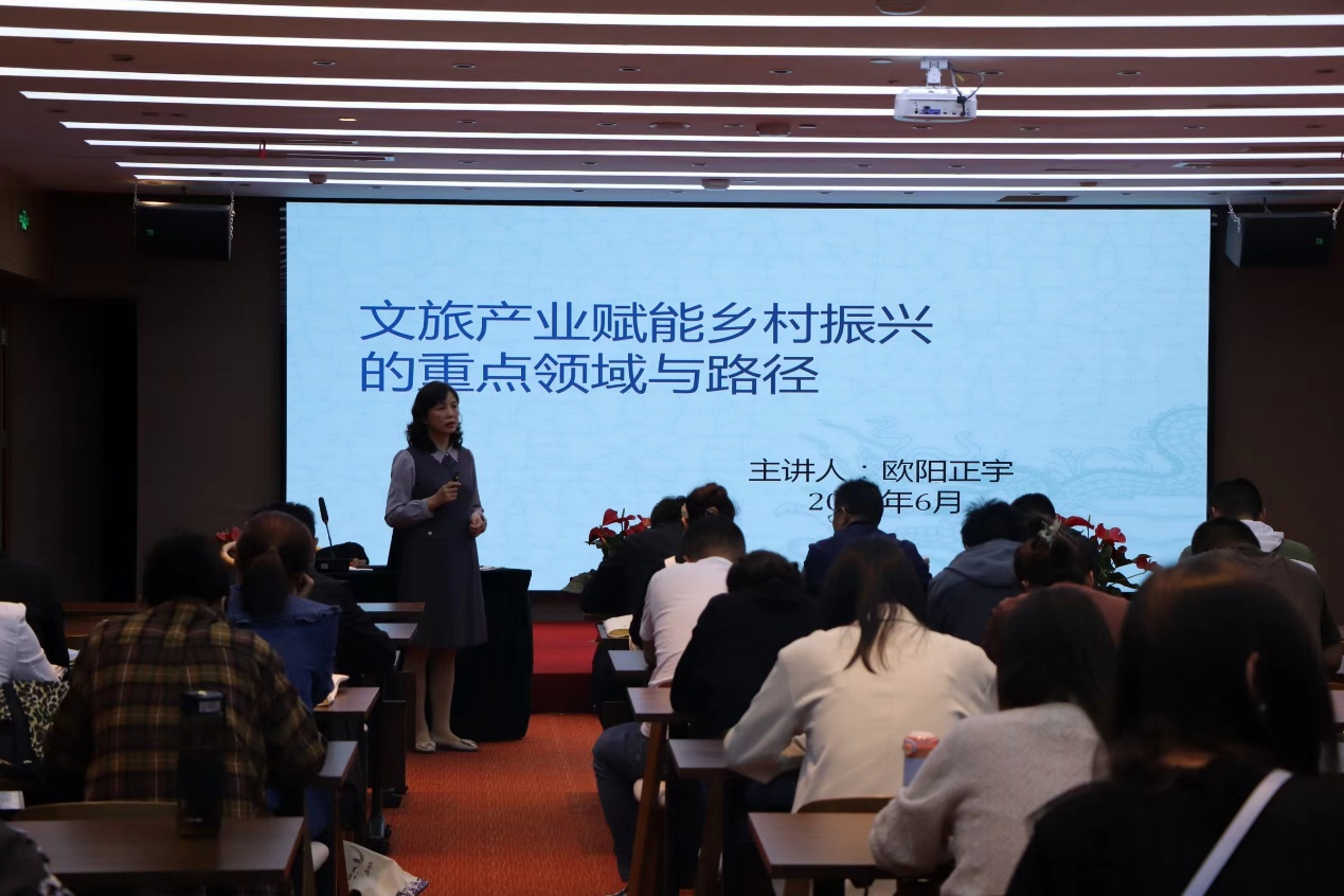 6月4日,谢民老师和欧阳正宇老师在栖云小镇菩隐酒店会议室进行授课。室内授课分为两个主题,分别是谢民老师的“农家乐项目策划与运营”和欧阳正宇老师的“文旅产业赋能乡村旅游产教融合推动乡村振兴”。课堂上,学员积极参与课堂讨论,课堂氛围欢快、组织安排有序。