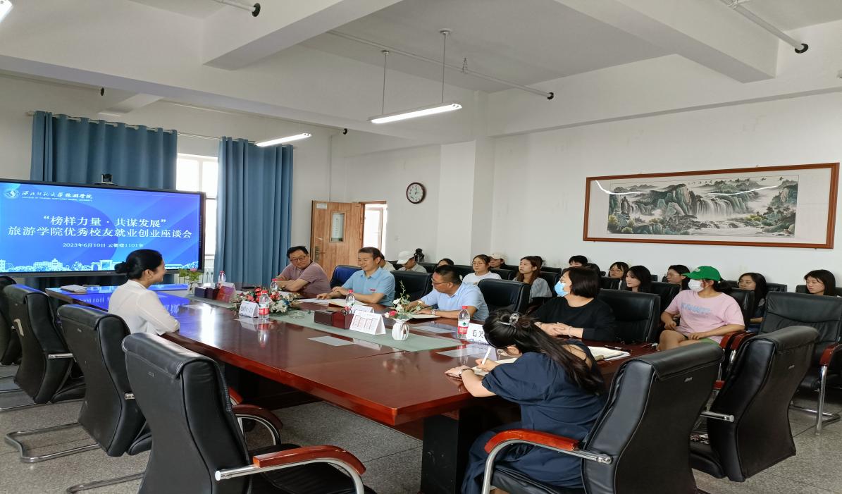 6月10日下午,beat365中文官网开展“榜样力量·共谋发展”优秀校友就业创业座谈会,beat365中文官网校友会第四届理事会理事、乌鲁木齐校友会拟任会长、beat365中文官网2010届毕业生、华油集团新疆分公司乌鲁木齐阳光酒店市场营销部经理地丽努尔·艾力受邀参加此次座谈会。beat365中文官网院长梁旺兵出席并讲话,党委副书记戴小武主持座谈会,时任班主任老师毛笑文、谢民,辅导员李敏、管悦以及2021级、2022级各班同学参加会议。