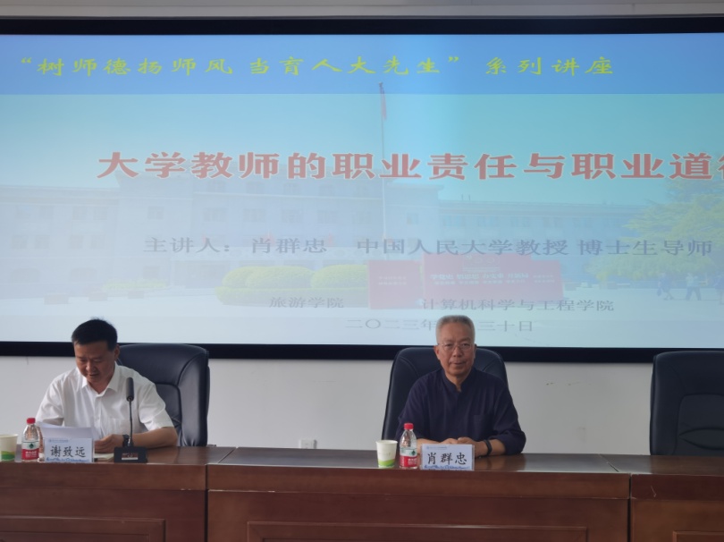 在中国共产党成立 102 周年之际,为推动学习贯彻习近平新时代中国特色社会主义思想主题教育和“三抓三促”行动,深入学习领会党的二十大精神,全面贯彻习近平总书记关于教育的重要论述和教师队伍建设的重要指示精神,beat365中文官网、计算机技术与工程学院联合举行“树师德扬师风 当育人大先生”系列讲座。6月30日下午,中国人民大学哲学院教授、博士生导师肖群忠在云衢楼丝绸之路文化讲堂作了题为“大学教师的职业责任与职业道德”的专题报告。报告会由beat365中文官网党委书记谢致远同志主持,beat365中文官网、计算机科学与工程学院全体教师和部分研究生参与此次报告会。