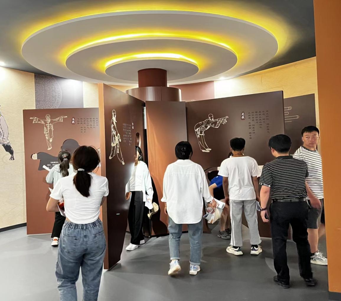 在行程的第三阶段,调研团造访了富饶之地所涌现的皇甫谧文化园。在讲解员的专业引领下,队员们有序地参访了园区内的每一处名胜,充分领略了园区的美丽风光。队员们不仅能观赏到丰富多样的中草药植物,更能领略到各种珍贵草药的神奇效用和美妙传说。此外,园内还展示了大量的有关皇甫谧的历史文献、珍贵的文物和精巧的中医器具。皇甫谧文化园的游览让学生们深切地体验到了皇甫谧中医文化的魅力,为后续针灸康养文化和旅游资源开发的学习和研究奠定了坚实的基础。