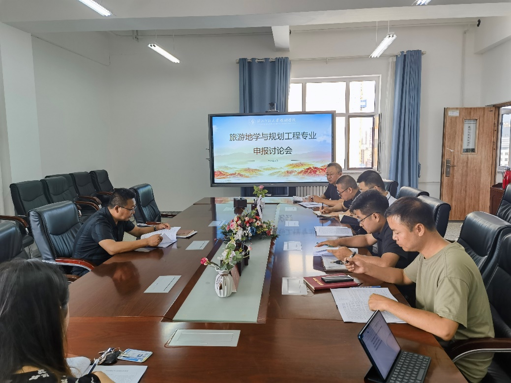 会议上柴亚林副院长对学院拟申报旅游地学与规划工程专业的设置概述、专业设置的可行性与必要性和人才培养方案三个方面进行了汇报,旨在优化学院学科专业建设,深耕西北文化旅游产业,全面助力文化旅游强省建设,有助于建设高质量的学科和专业。