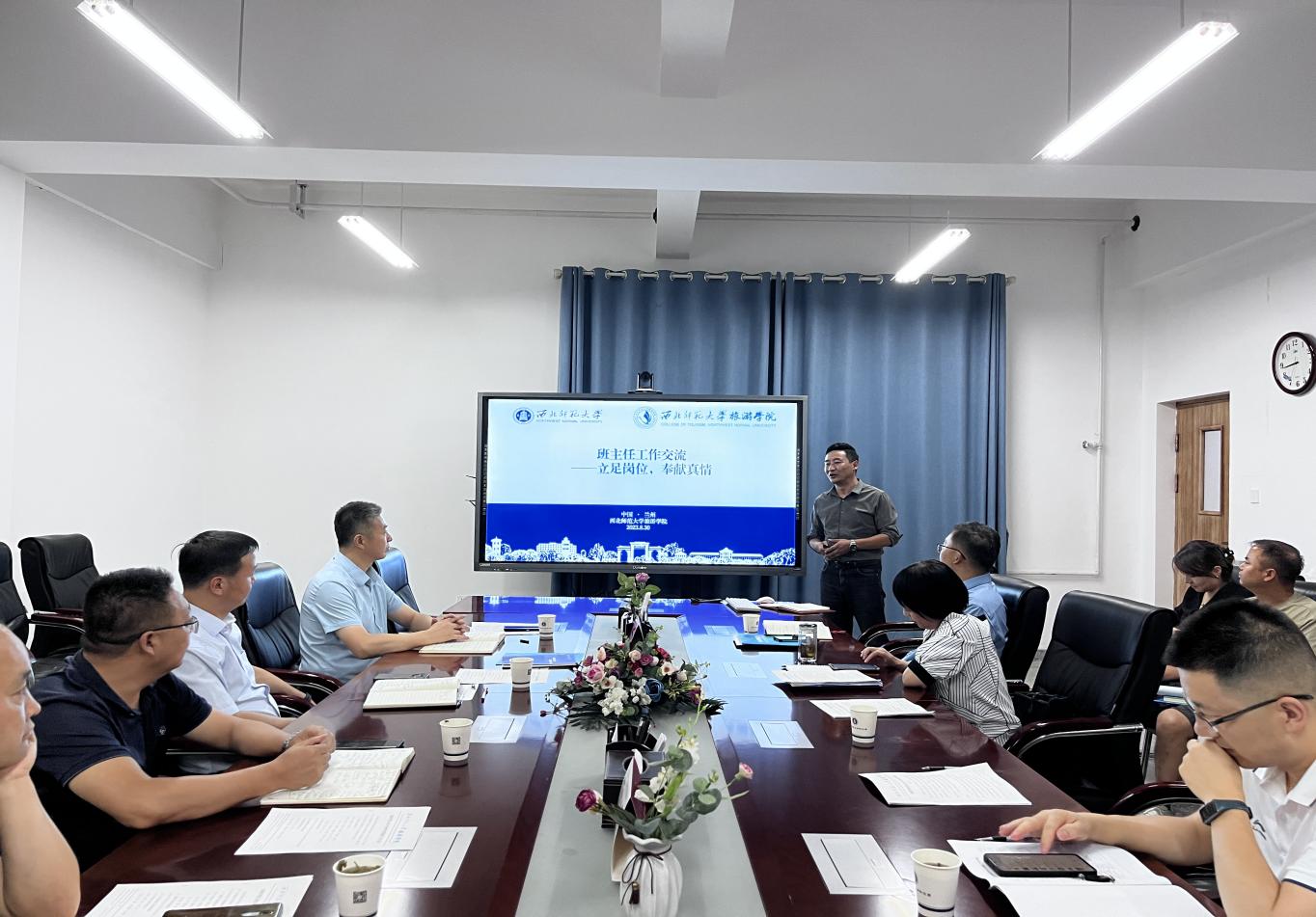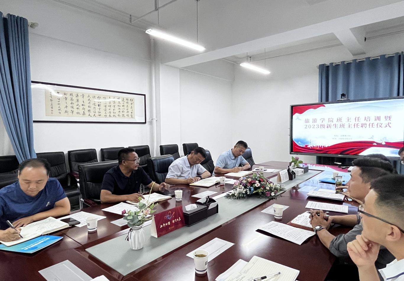 8月31日晚,beat365中文官网班主任培训暨2023级新生班主任聘任仪式在云衢楼1101会议室举行。学院党委书记谢致远、院长梁旺兵出席并讲话。副院长武克军和全体班主任、空乘工作站及专职辅导员共30余人参加会议。党委副书记戴小武主持会议并解读《beat365中文官网班主任工作量化考评细则》。
