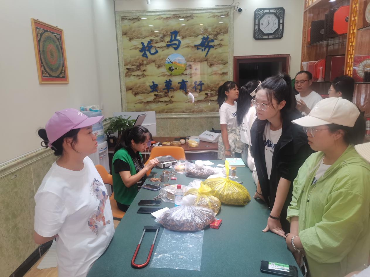 在观摩学习的过程中,实践团与产业基地负责人以及虫草商贩就“民族地区康养商品的种植、采集、销售渠道、电商的运营、文旅康养商品的发展模式”等一系列问题进行了访谈。实践团团员们对当地康养商品的流动所引发的人员交往、文化交流、资金流动有了充分的了解,深刻的意识到西北民族地区文旅康养产业的发展构建了各民族广泛交往、全面交流、深度交融的纽带,增进了民族团结进步,增强了中华民族凝聚力,是助推铸牢中华民族共同体意识的有效方式及具体实践。