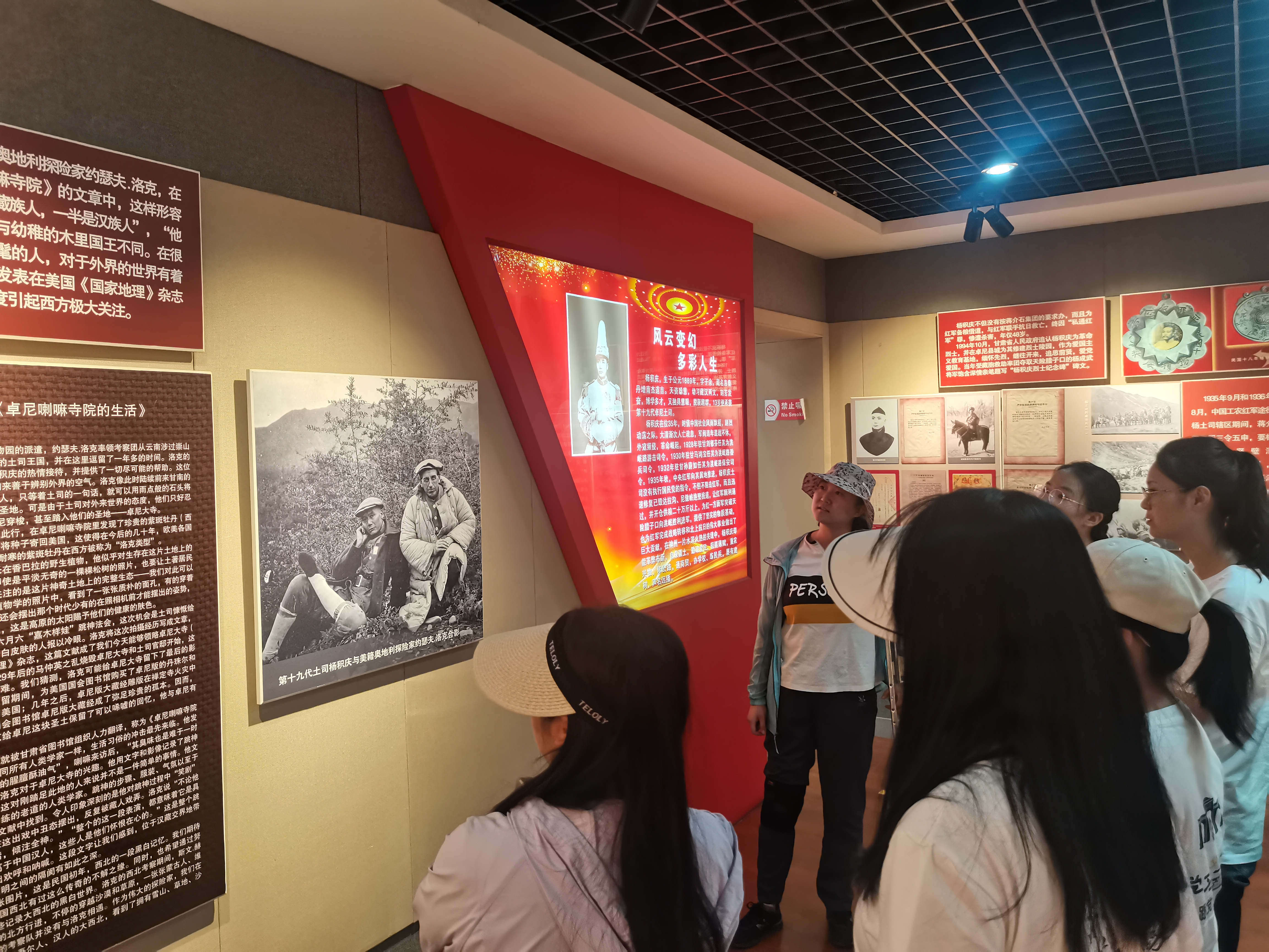 实践团第一站来到卓尼县杨土司革命纪念馆,通过对杨土司作为甘南藏族同胞的优秀代表、民族团结楷模、让道济粮、抢修栈道木桥、收留接济伤员等深明大义的革命贡献,以及后任土司率部起义、废除土司制度、铲烟禁毒等利国利民的工作事迹的了解,让团员们深刻的理解了铸牢中华民族共同体意识的历史文化基础。
