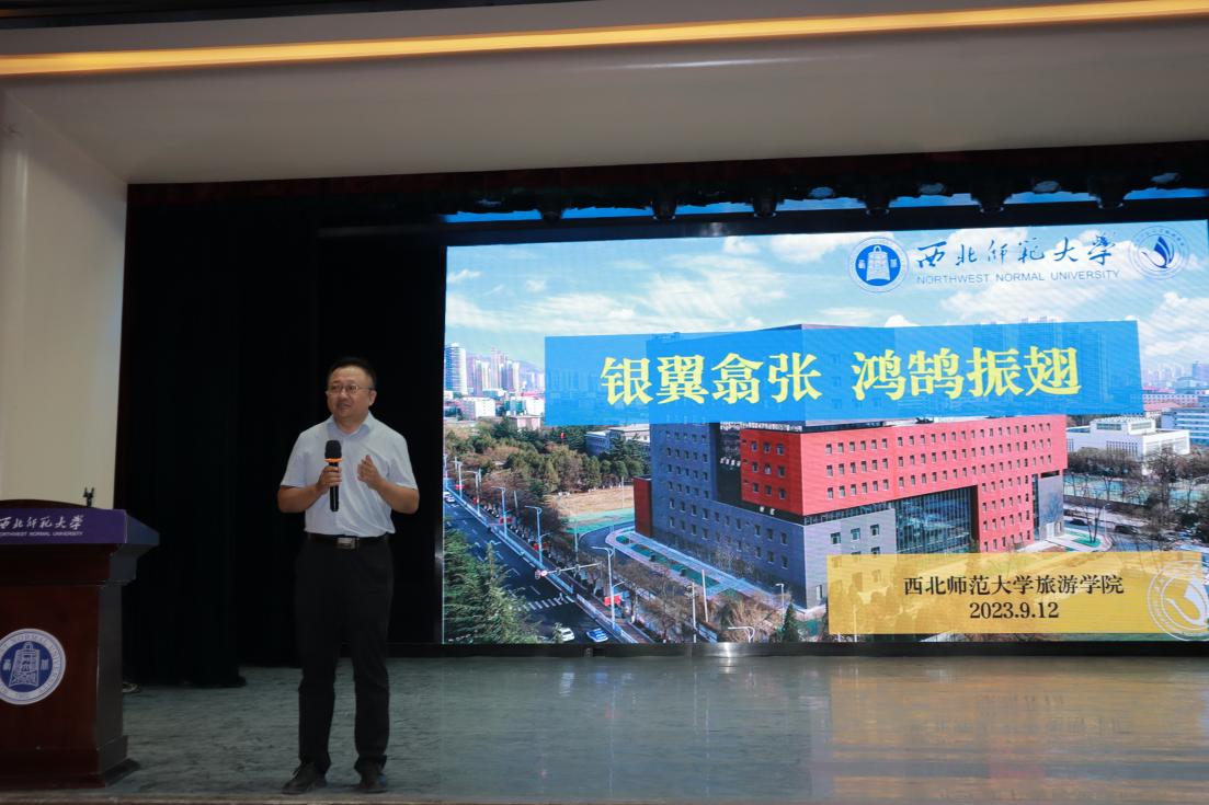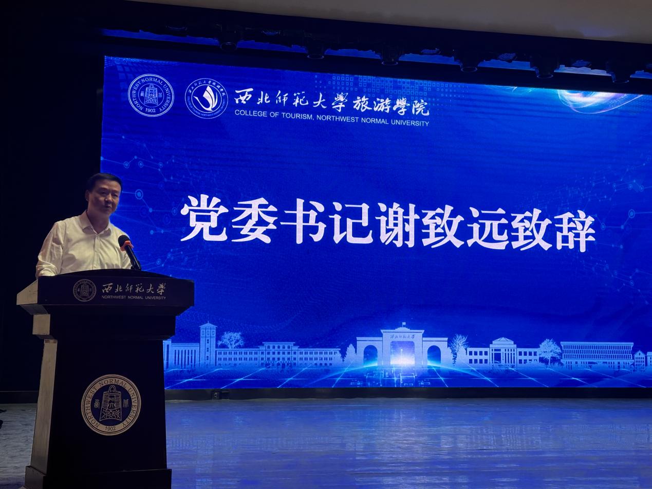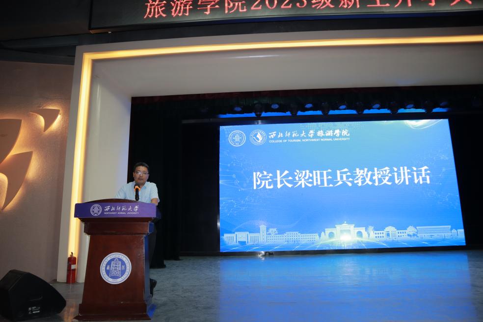 典礼在庄严的国歌声中拉开帷幕,谢致远代表旅游学院51位老师向2023级210名新同学表示热烈欢迎,寄语新生要以正确的世界观、人生观、价值观来指导自己的选择,努力在实现中华民族伟大复兴中国梦的生动实践中放飞青春梦想;强调新时代的大学生要在理想关、本领关、创新关、奋斗关、品格关五个方面锤炼打磨,做时代的“弄潮儿”,自觉将个人前途与祖国命运紧密联系。