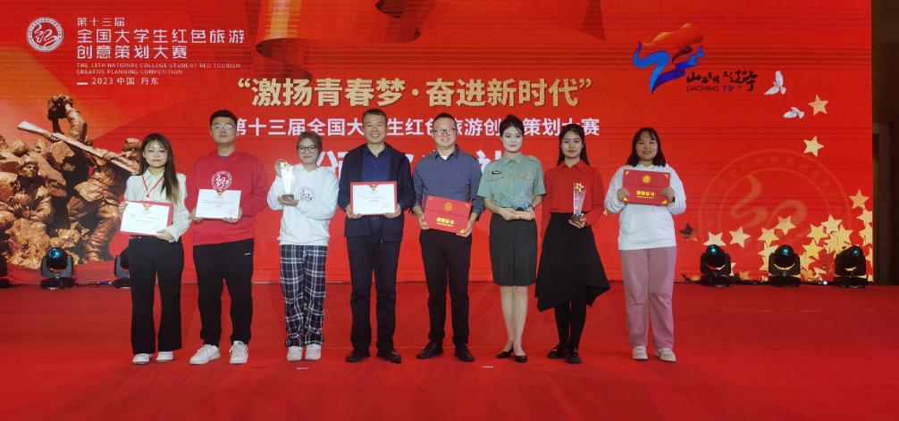 10月18日-21日,第十三届全国大学生红色旅游创意策划大赛全国总决赛(线下环节)在英雄城市辽宁省丹东市隆重举行,经过初赛、全国总决赛(线上环节)、全国总决赛(线下环节)的激烈角逐,beat365中文官网旅游管理系本科生“薪火耀陇原”团队和“一星一点”团队在全国四千多支高校队伍中脱颖而出,分别荣获全国总决赛一等奖、全国总决赛二等奖,beat365中文官网荣获“最佳组织奖”,武克军老师、李东泽老师荣获最佳指导教师奖,“薪火耀陇原”团队成员王一博荣获“最佳风采奖”。