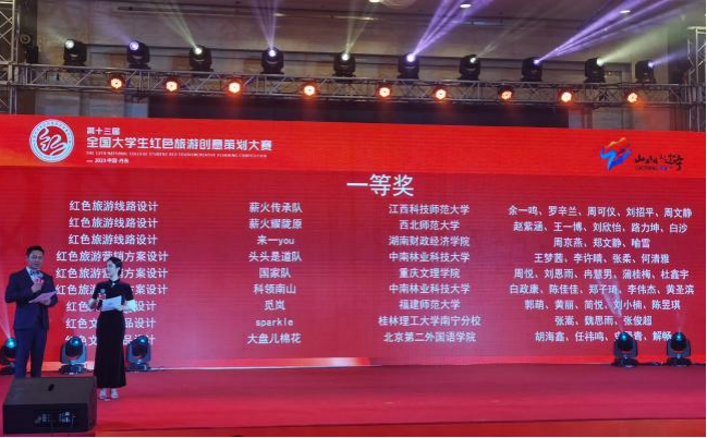 第十三届全国大学生红色旅游创意策划大赛由文化和旅游部资源开发司、辽宁省文化和旅游厅、丹东市人民政府、北京第二外国语学院共同主办,教育部思想政治工作司、中共北京市委教育工作委员会、“学习强国”学习平台支持,中国旅游协会旅游教育分会等单位承办。本届大赛共吸引了来自全国676所高校的4706支团队、超过2.8万名的参赛选手参加,提交作品4139份,最终,60支队伍入围决赛(现场环节)。