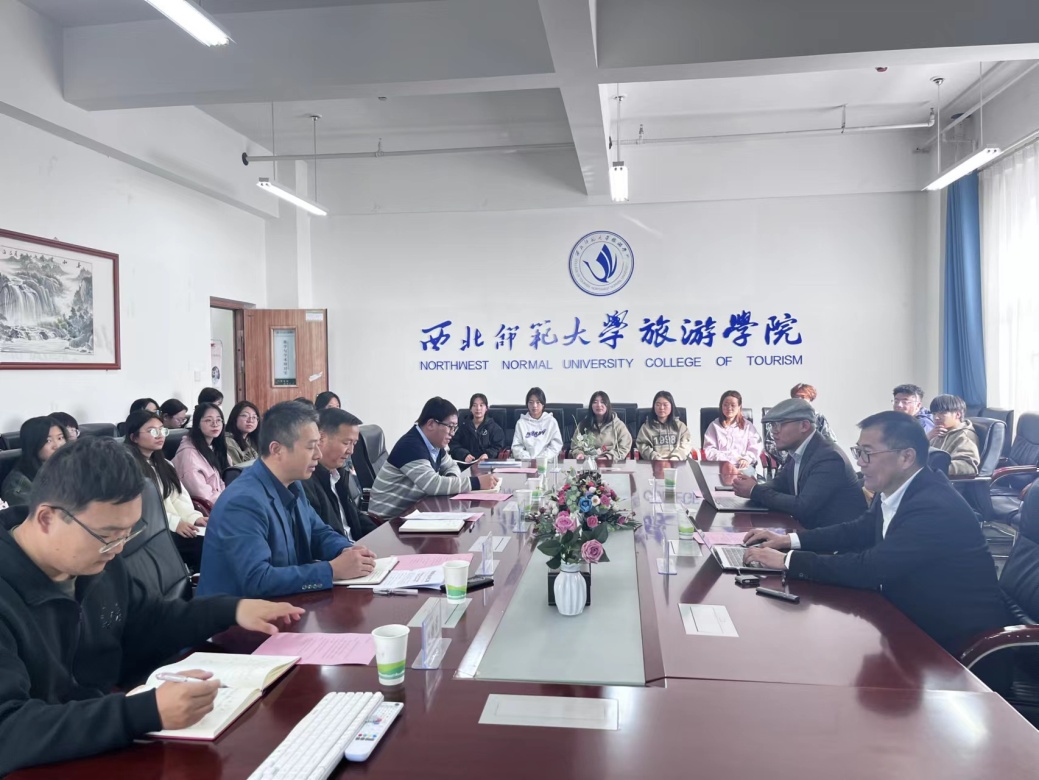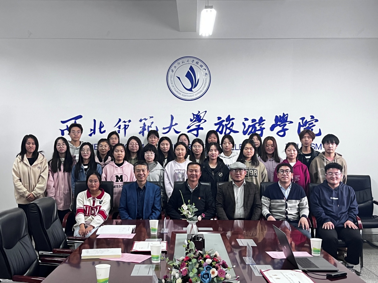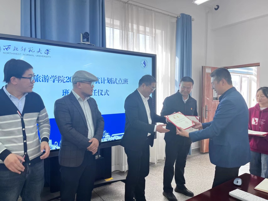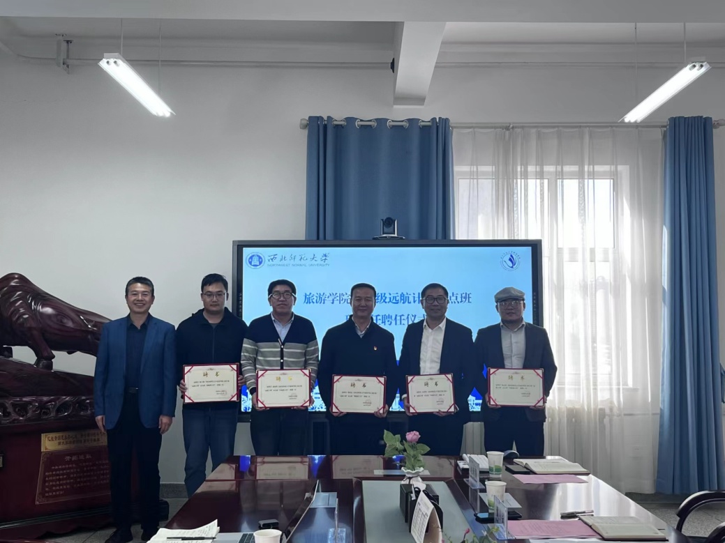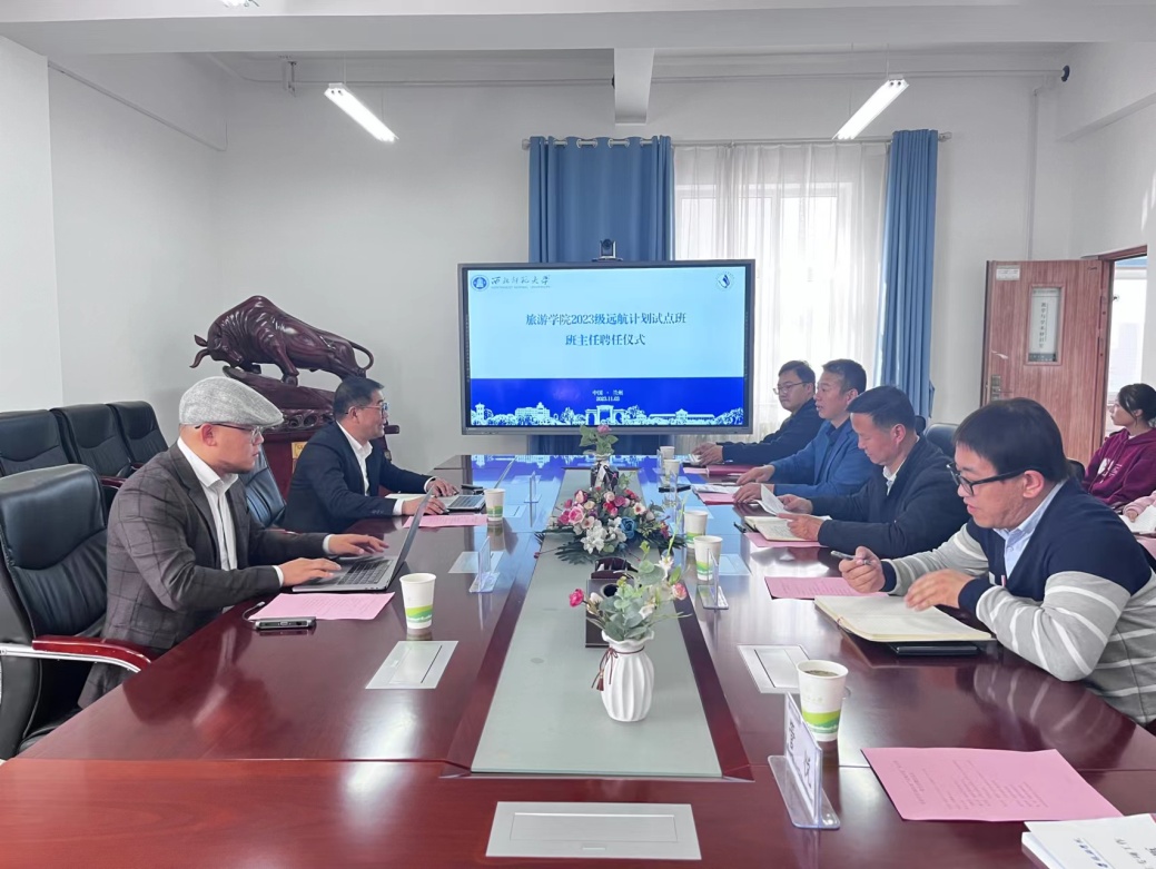 2023年11月3日下午,beat365中文官网在文科实训楼云衢楼1101室举行2023级“远航计划”试点班班主任聘任仪式。学院党委书记谢致远,甘肃文旅产业集团有限公司项目总监、正高级工程师金世胜,腾讯广告政务旅游中心甘肃负责人、甘肃青松文旅创始人兼总经理赵志浩,学院教师蒲利利、专职辅导员赵新帮、管悦以及2023级旅游管理专业3班全体同学参加此次聘任仪式。会议由党委副书记戴小武主持。
