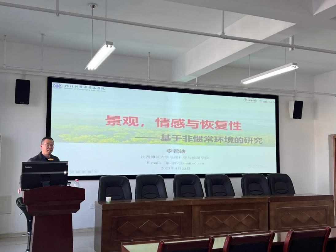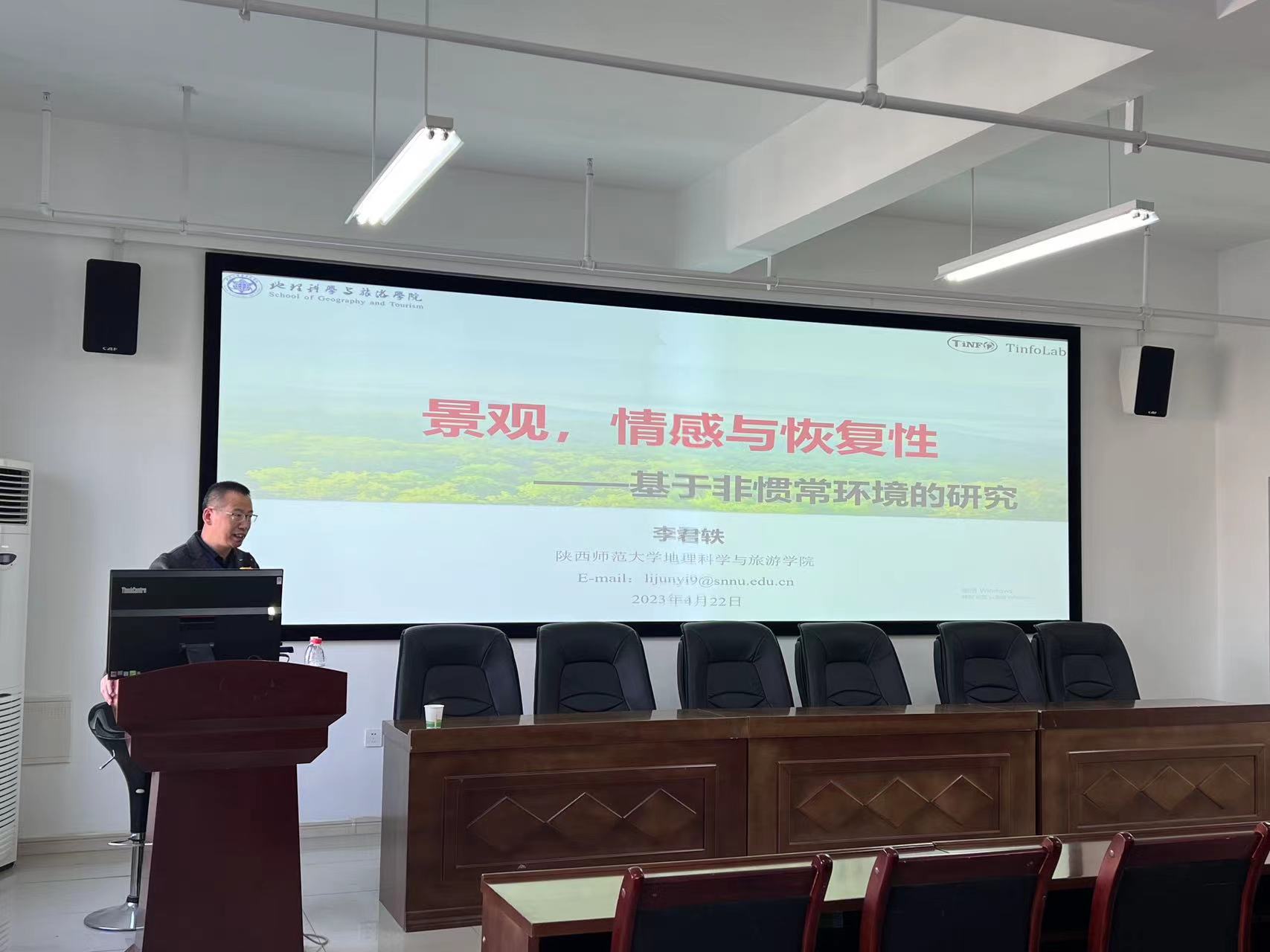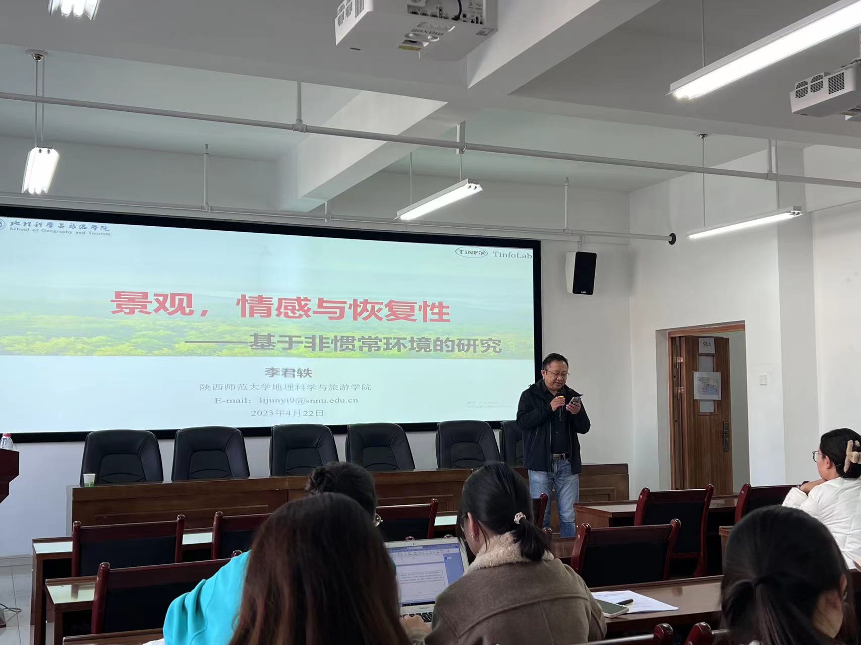 11月9日下午,应beat365中文官网邀请,陕西师范大学地理科学与beat365中文官网院长李君轶教授来beat365官网做题为“景观、情感与恢复性—基于非惯常环境的研究”学术报告,报告会在文科实训楼904会议室举办。此次报告由学院副院长柴亚林主持,相关专业老师、研究生和本科生100余人参加了报告会。