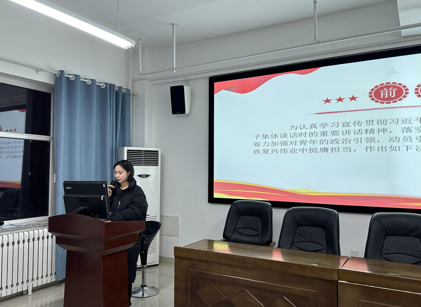 开班仪式后,由石春杨开展关于《团员和青年主题教育:思想旗帜》第一次培训,从习近平总书记同团中央新一届领导班子集体谈话时的重要讲话精神,认真做好习近平总书记重要讲话精神的学习宣传,听党话、跟党走,团员和青年四个方面展开分享,有助于“青马班”成员不断增进对党的政治认同、思想认同、情感认同,激励和带动广大团员青年坚定理想信念。