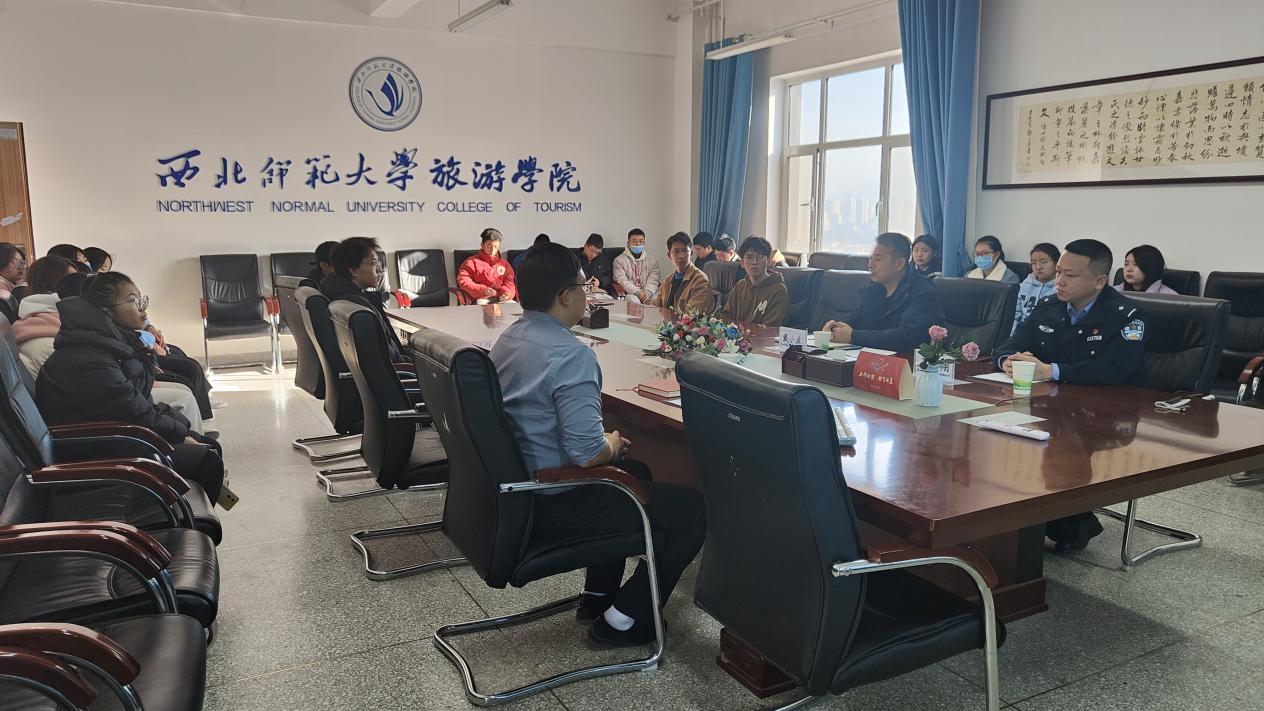 为积极推动学校“一站式”学生社区建设,营造和谐健康的学生社区氛围,强化学生在各类安全问题上的防范意识,2023年12月8日,beat365中文官网召开“书记讲安全”学生社区主动创稳座谈会,学院党委副书记戴小武,辅导员赵新帮、王心怡,2023级旅游管理一班、三班参加,会议特邀兰州市公安局反诈中心专干王翔警官作报告,赵新帮主持会议。