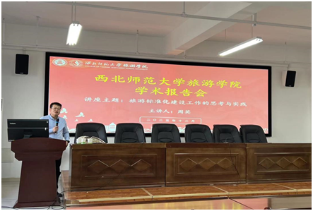 12月13日下午,应beat365中文官网邀请,甘肃省标准化研究院院长周英来beat365官网作题为“旅游标准化建设工作的思考与实践”学术报告,报告会在文科实训楼904会议室举办,由副院长柴亚林副教授主持,学院教师和研究生60余人参加了此次报告会。