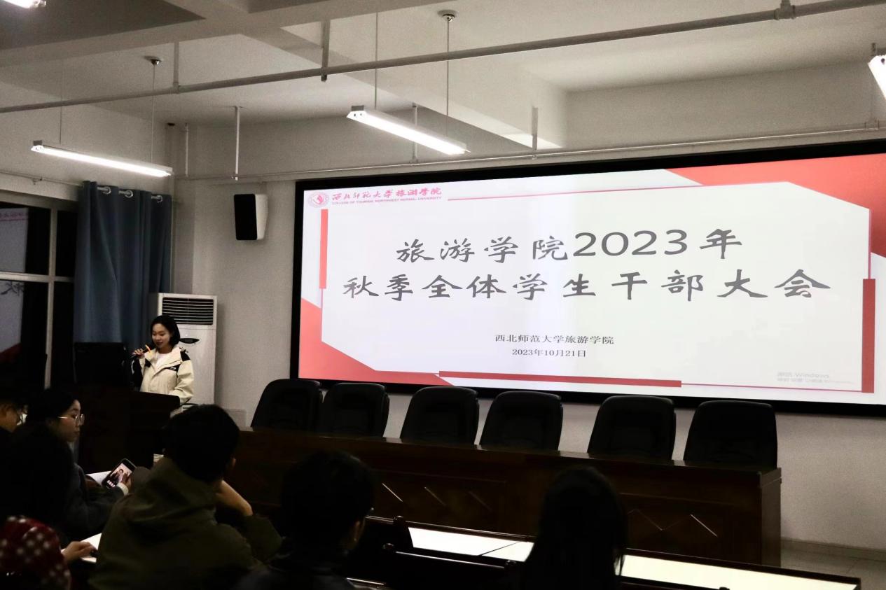 2023年10月22日晚,beat365中文官网秋季学生干部大会于云衢楼904会议室召开。专职辅导员赵新帮、管悦,学生会全体成员,研究生会全体成员,2022级、2023级班长和团支书,高年级优秀班委代表参加会议,学生会执行主席石春杨主持会议。