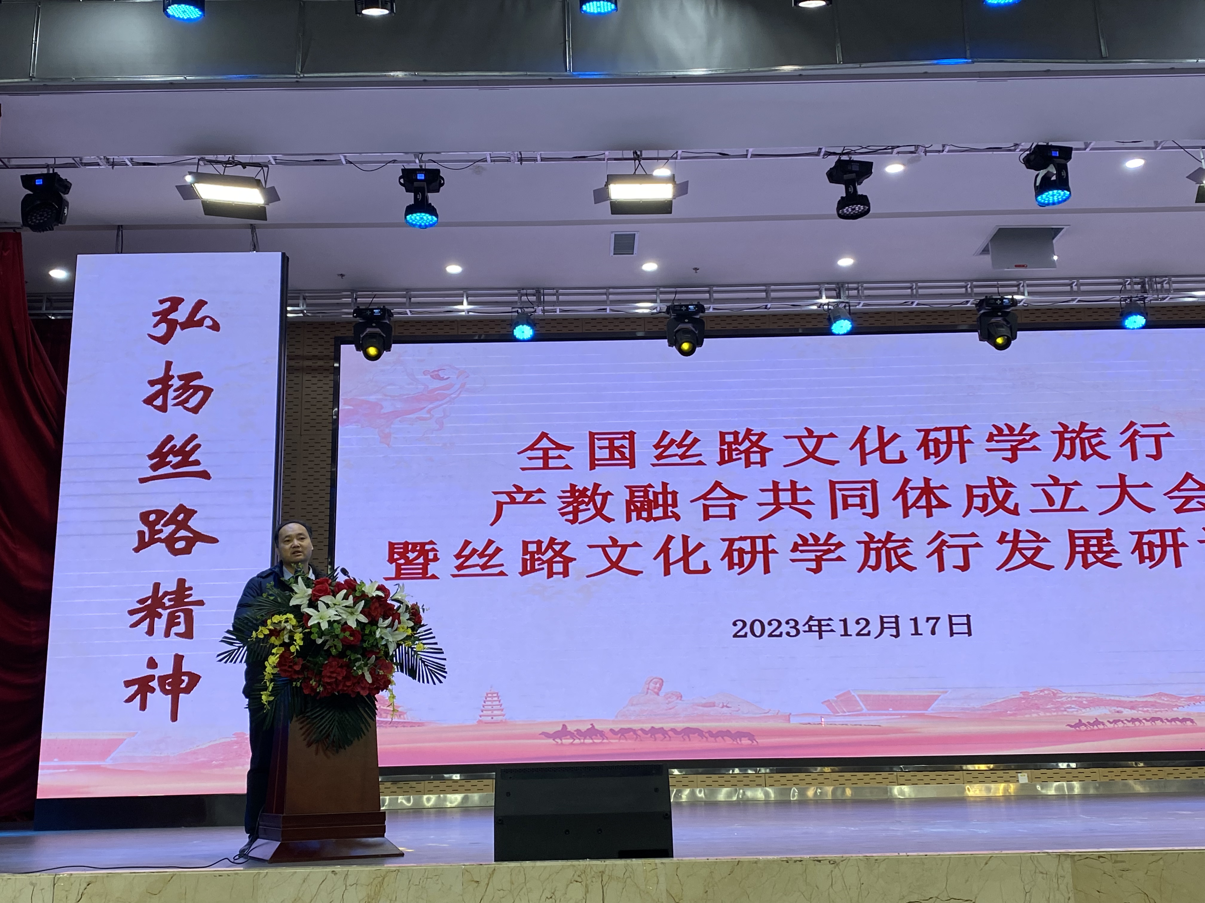 2023年12月17日,学校党委常委、纪委书记、监察专员马庆同志带领beat365中文官网梁旺兵院长、王力副院长和武克军副院长一行参加了全国丝路文化研学旅行产教融合共同体成立大会。