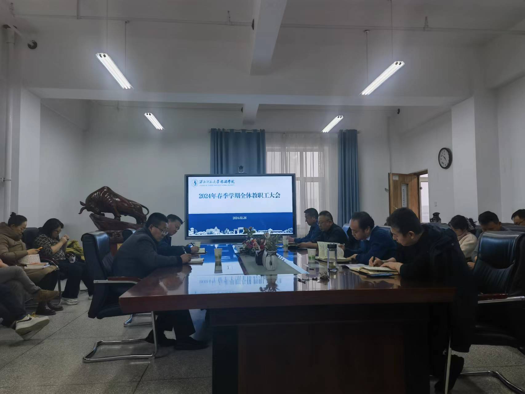 2月26日,beat365中文官网在文科实训楼1101会议室召开2024年春季学期工作安排会,全体教职工参加会议。会议由党委书记谢致远主持。