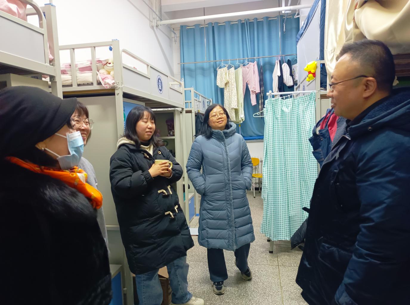 同时,学院领导在走访毕业生宿舍时给予同学们相应的指导和建议,关切地询问了同学们的考研和就业情况,听取了同学们对于复试准备的进展和就业的困惑,并分享了自己的经验和建议,鼓励学生们保持积极的心态,努力为自己的未来奋斗。