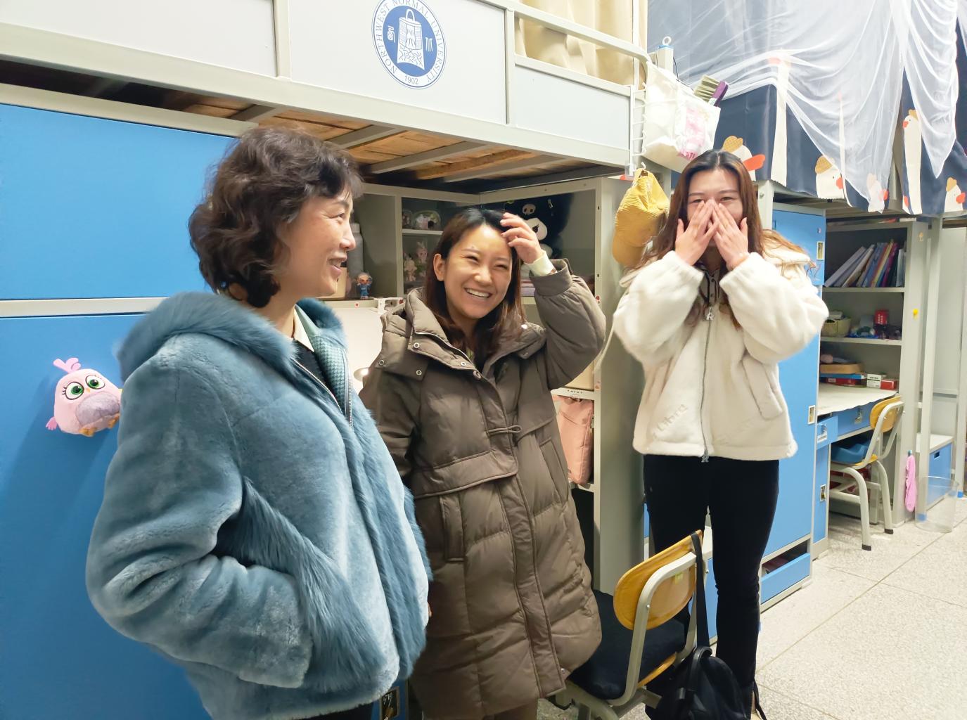 在宿舍走访过程中,老师们与同学们进行了亲切的交流,详细的了解同学们的心理状态与日常生活情况,并对宿舍的卫生状况、安全设施以及住宿环境进行了检查,确保同学们身心健康与外部环境安全,为开学做好充分的准备。