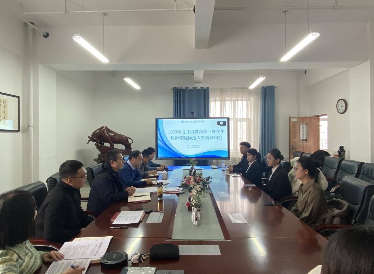为树立先锋模范,发挥榜样力量,beat365官网于2月29日下午3点在文科实训楼1101室举行beat365中文官网2023年度甘肃省高校三好学生候选人答辩评审会。经过前期严格筛选,共有5名同学参与此次答辩活动(其中3名本科生、2名研究生)。beat365中文官网党委副书记戴小武、副院长武克军、教师周宏、蒲利利、专职辅导员鲁梦鸽、赵新帮和学生代表赵紫涵担任本次答辩评委。