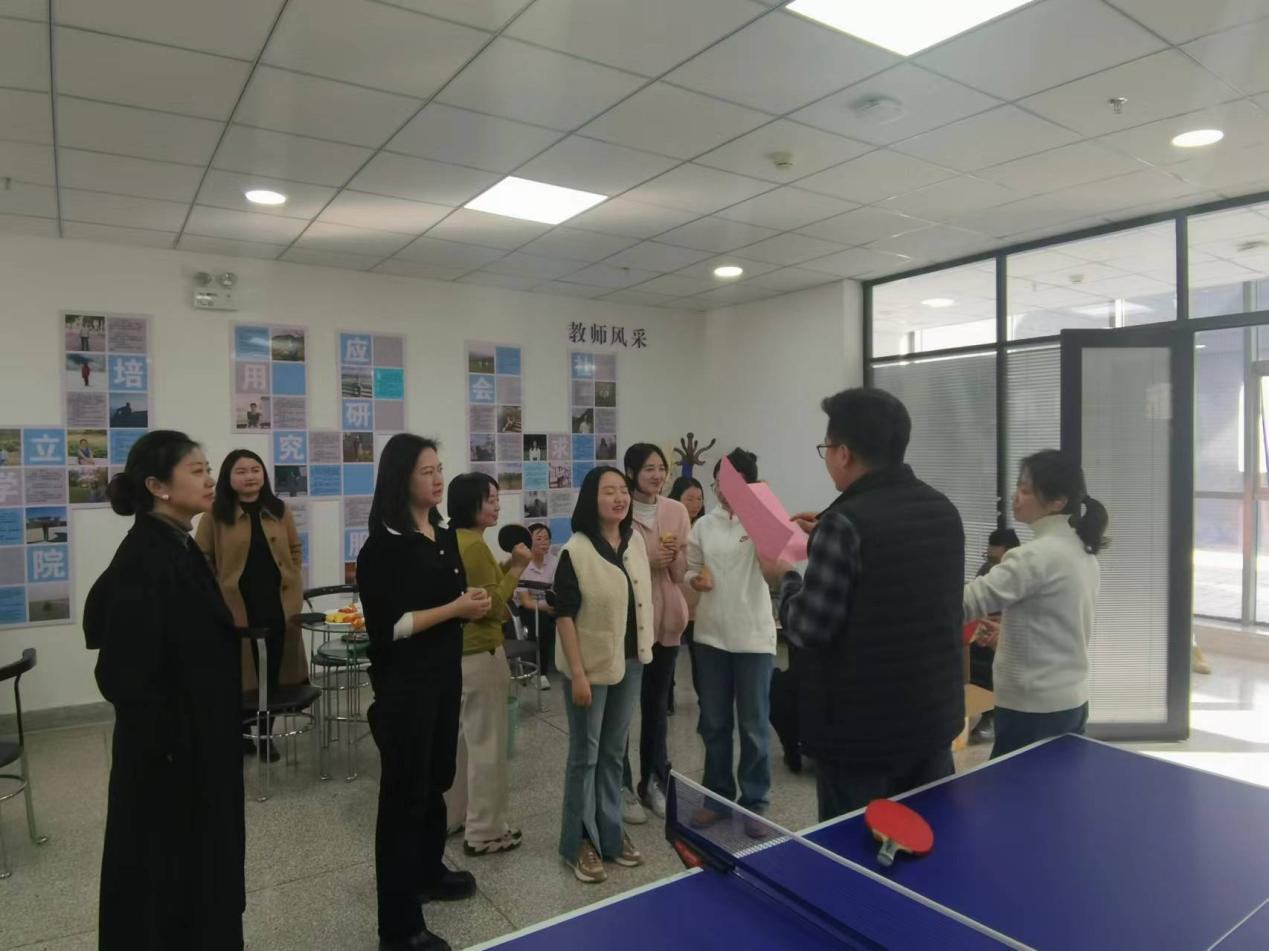 3月7日下午,beat365中文官网在职工之家活动室举办了庆祝第114个“三·八”国际劳动妇女节系列文体活动。本次活动以“快乐工作、幸福生活”为主题,旨在向全体女性师生表达敬意,并提升学院内部的凝聚力和活力。学校工会副主席罗新国应邀出席并视察学院职工之家建设情况,学院党委副书记、工会主席戴小武主持活动。