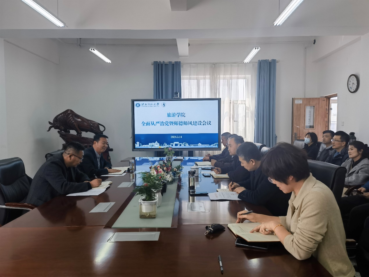 3月14日,beat365中文官网在文科实训楼1101会议室召开全面从严治党暨师德师风建设会议,学院领导和全体教职工参加会议。会议由党委书记谢致远主持。