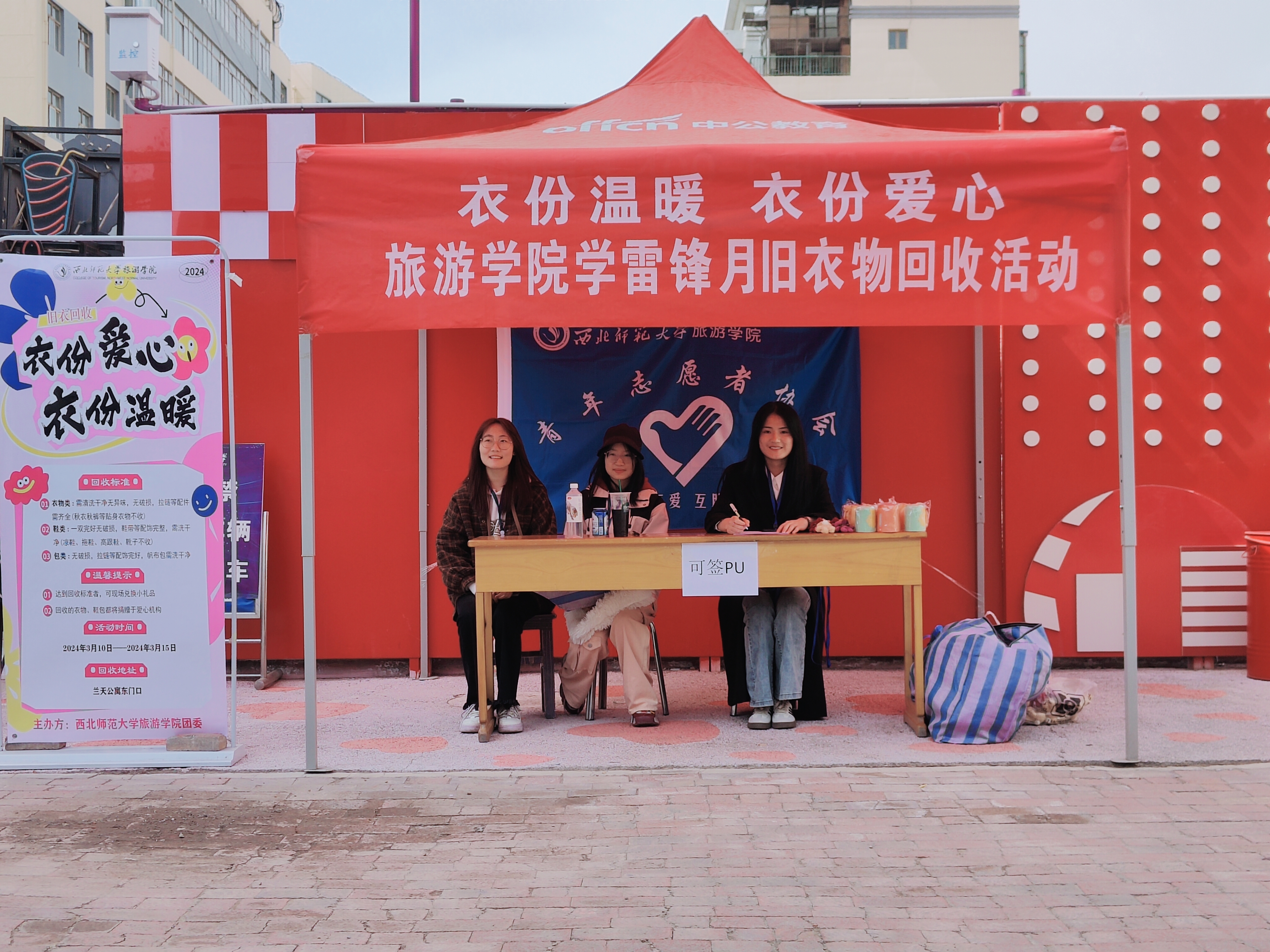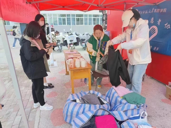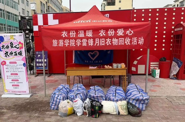 物尽其用之时,人亦可尽其善。为弘扬雷锋的无私奉献精神、践行低碳发展理念、提高资源利用率、向贫困地区儿童传递一份爱心,2024年3月10日—15日,beat365中文官网组织开展为期5天的“衣份温暖 衣份爱心”学雷锋青年志愿服务月活动。该活动在兰天公寓东门设置旧衣回收点,面向全校师生回收闲置衣物、统一收集后将公益捐献给爱心组织。