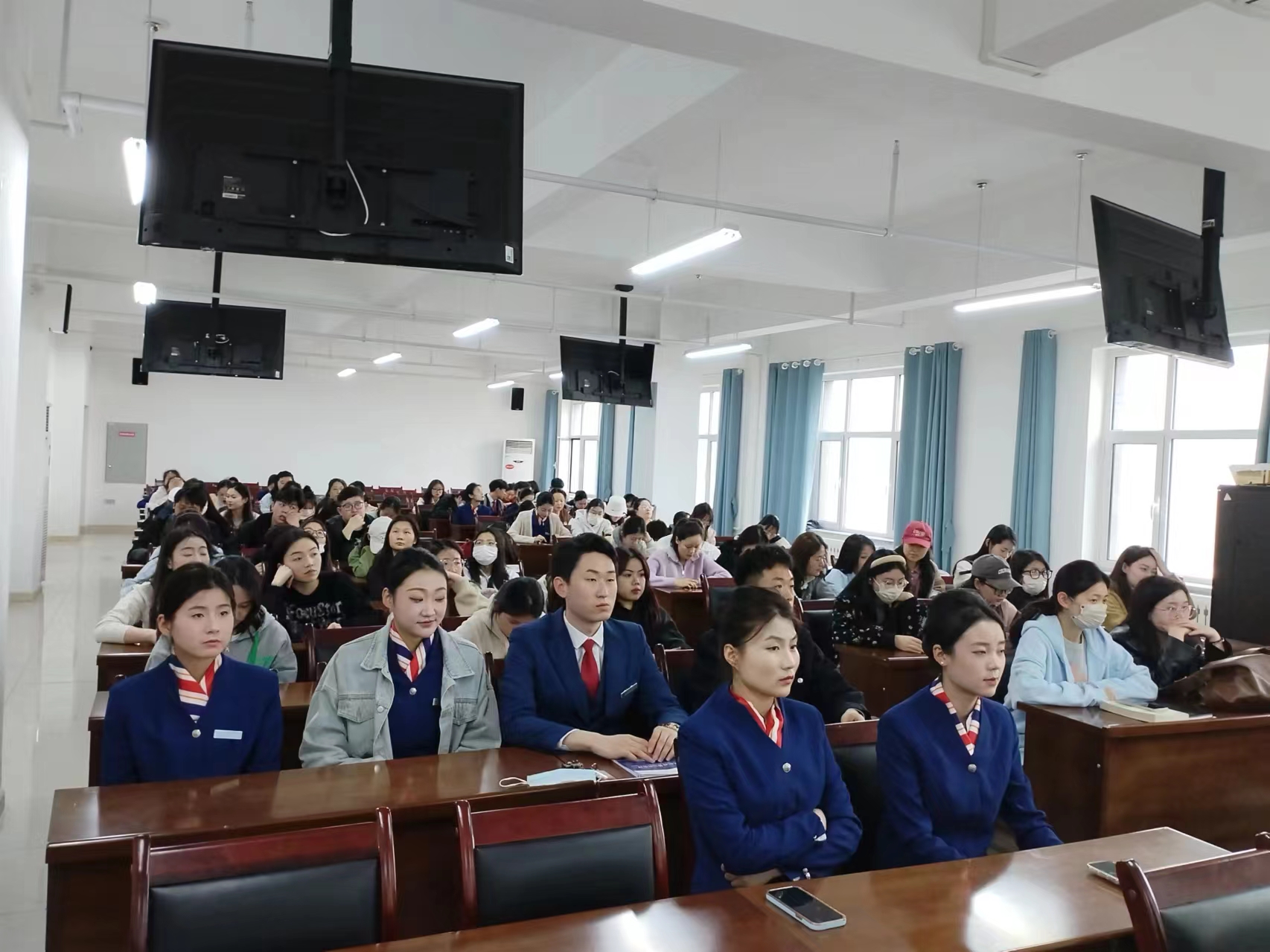 2024年4月2日下午,beat365中文官网举办新疆生产建设兵团文化旅游投资集团专场招聘宣讲会,学院党委副书记戴小武、专职辅导员赵新帮及三、四年级本科生120余人参加。