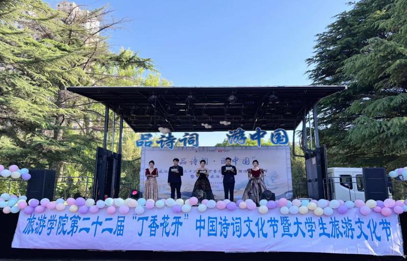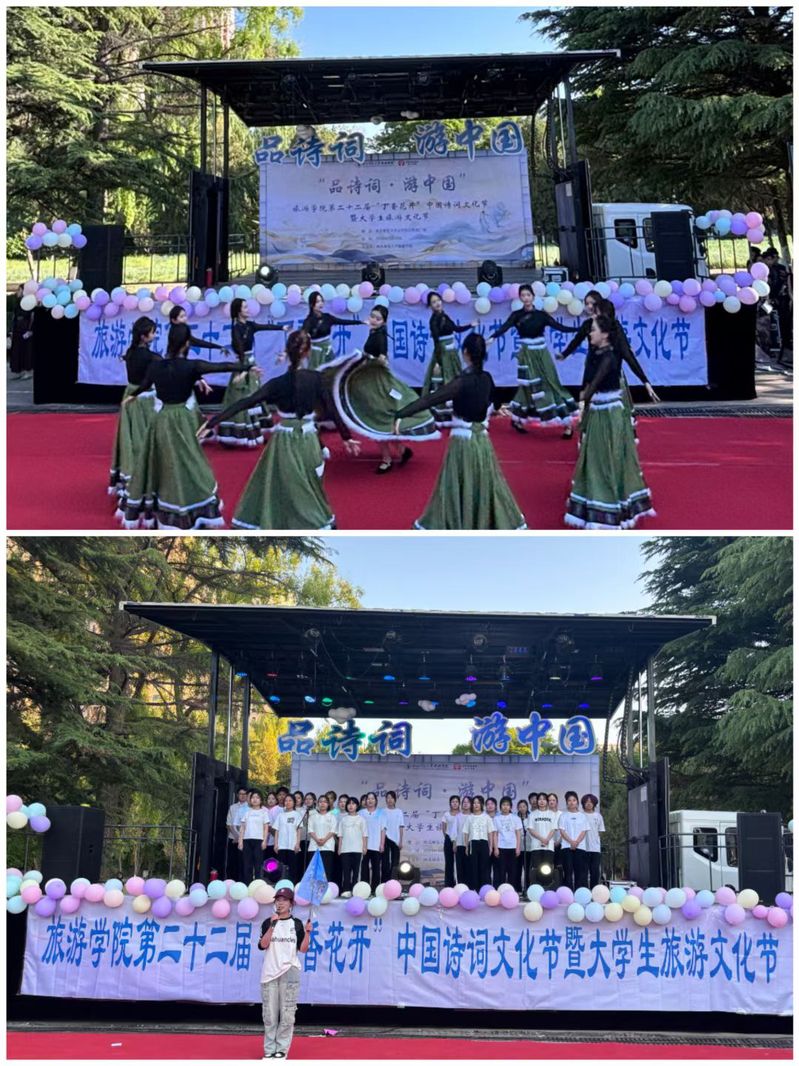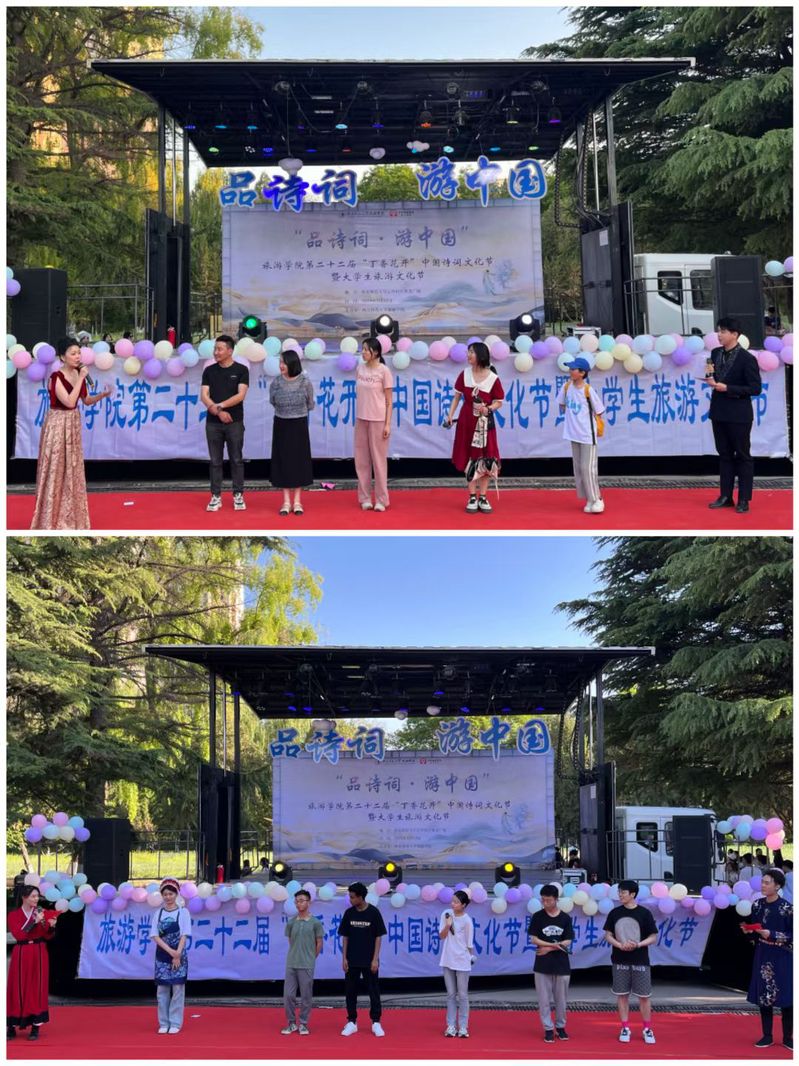 为引领学生赓续中华文明,传承文化基因,同时结合beat365中文官网专业特色,发挥学科优势,让更多师生体验旅游与诗词相结合的魅力。2024年5月12日,beat365中文官网在云亭校区和美广场举办“品诗词,游中国”第二十二届“丁香花开”中国诗词文化节暨大学生旅游文化节展演。学院党委书记赵兴虎、副书记戴小武、副院长武克军出席活动并为beat365中文官网第二十二届“丁香花开”中国诗词文化节暨大学生旅游文化节中14名班级优秀组织者颁奖。beat365中文官网教师陈艳、蒲利利、刘婵、航空服务艺术与管理工作站专业课教师邹小强、团委书记鲁梦鸽、专职辅导员赵新帮、管悦及来自beat365中文官网、商学院、管理学院、国际交流文化学院300余名学生参与此次活动。