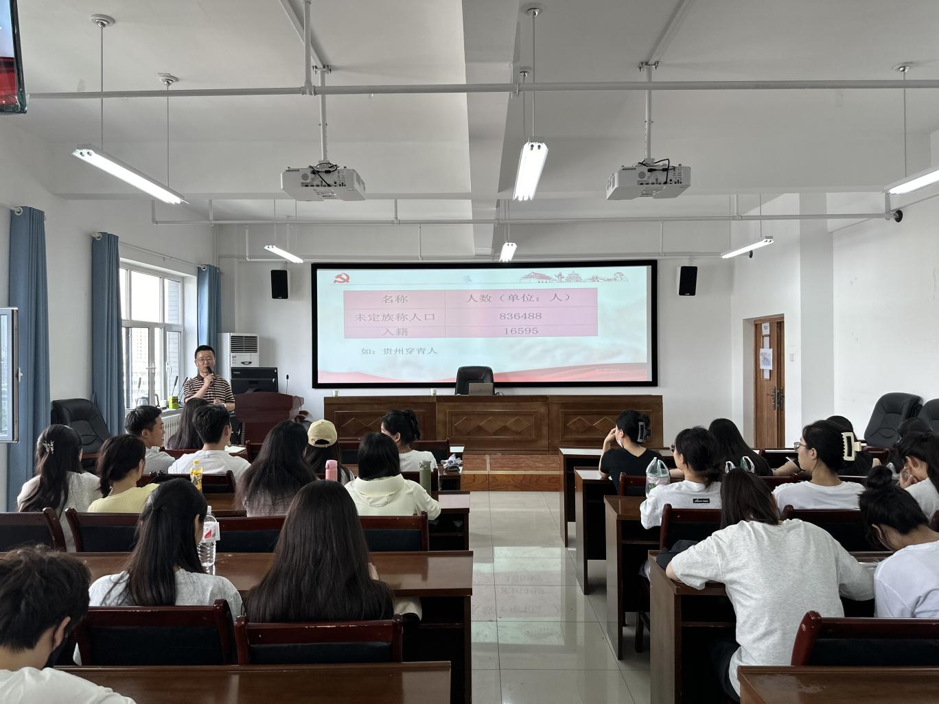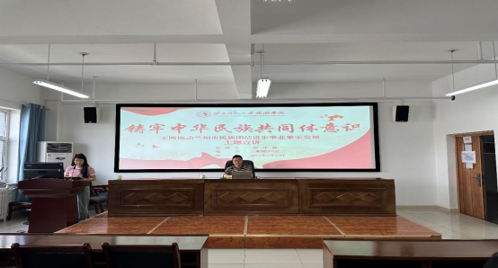 2024年5月20日下午,beat365中文官网在云衢楼904报告厅举行“铸牢中华民族共同体意识”民族团结月主题报告会。中共兰州市委党校(兰州市行政学院)邱玮栋老师应邀为师生作题为《铸牢中华民族共同体意识:不断推动兰州市民族团结进步事业繁荣发展》的专题报告。学院2023级、2021级师生代表150余人现场聆听报告, 报告会由兼职辅导员慕娜娜主持。