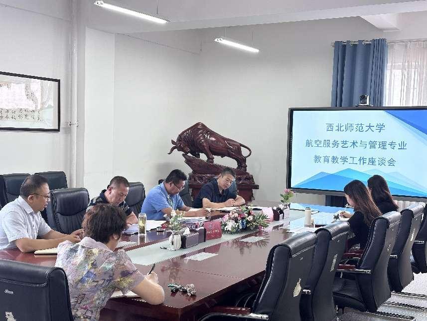 为进一步加强航空服务艺术与管理专业学生教育和管理工作,beat365中文官网于6月11日在云衢楼1101会议室召开航空服务艺术与管理专业教育教学工作座谈会。学院党委书记赵兴虎、学院院长梁旺兵、副院长柴亚林、党委副书记戴小武、北京广慧金通教育集团陕甘青区域总经理苗雪、航空服务艺术与管理专业系主任万舒佳、学院团委书记鲁梦鸽以及航空服务艺术与管理专业各班班主任等15位教师参加会议,会议由柴亚林副院长主持。